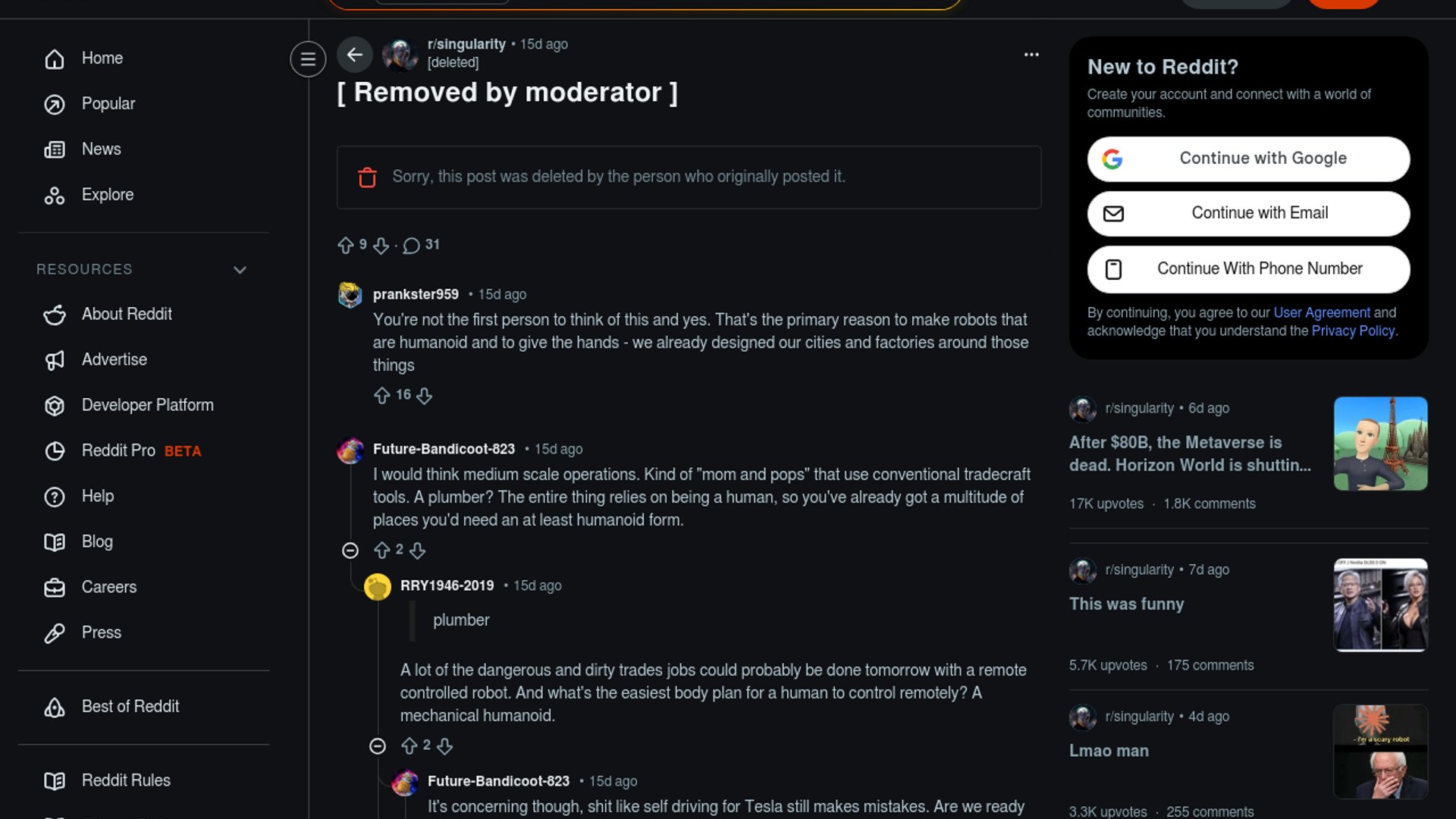 The Reddit post argues that humanoid robots only matter if they outperform specialist machines on both output and cost. Its spork analogy says general-purpose form factors risk becoming expensive mediocrity unless they can prove better unit economics.