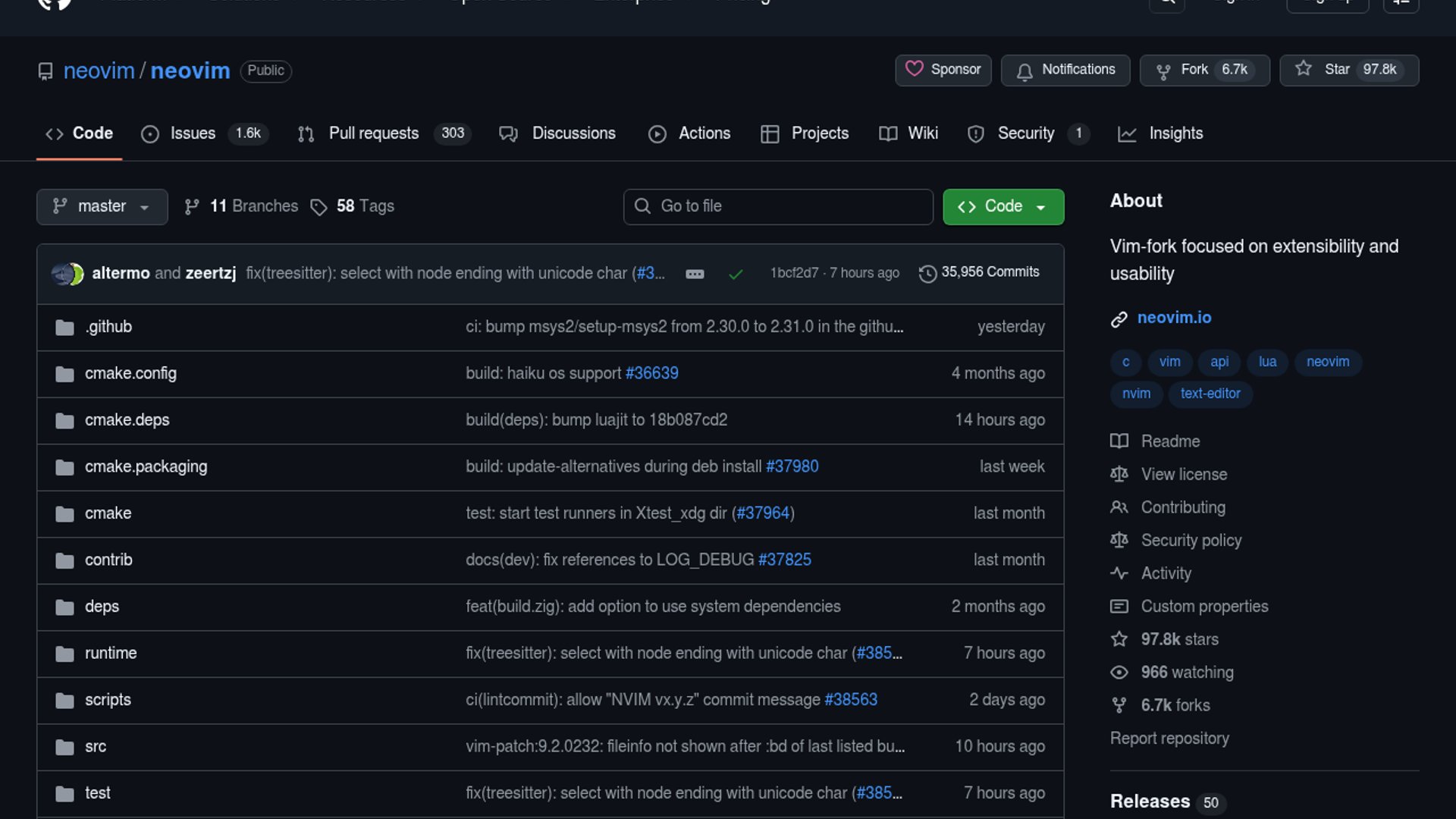 Neovim is the hyperextensible Vim-based editor built for extensibility, usability, and modern plugin workflows. The project remains actively maintained, with a current stable release of 0.11.5 and steady interest from power users who want Vim muscle memory plus Lua, LSP, and embeddable UI support.