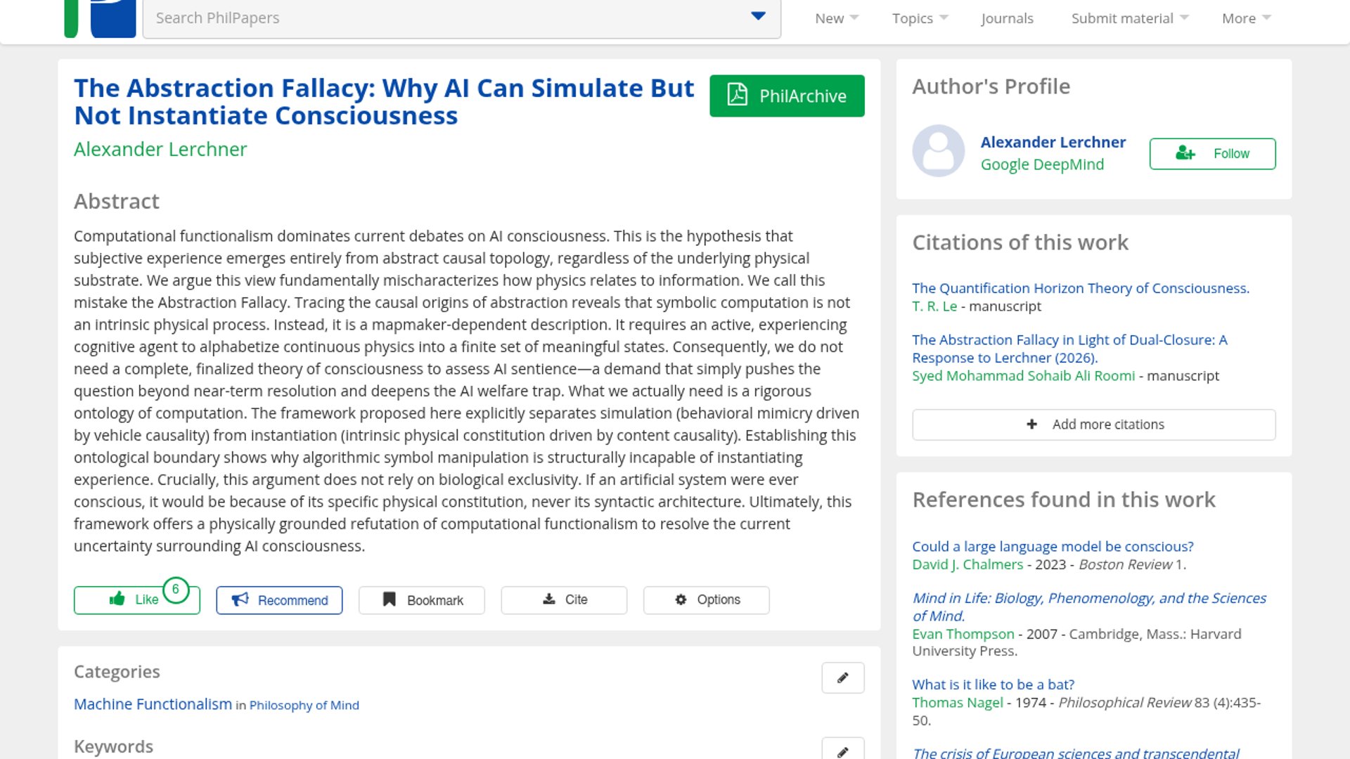 - –The official DeepMind publication says computation depends on an observer’s mapping of physics into symbols, which is the core of the “Abstraction Fallacy” claim.