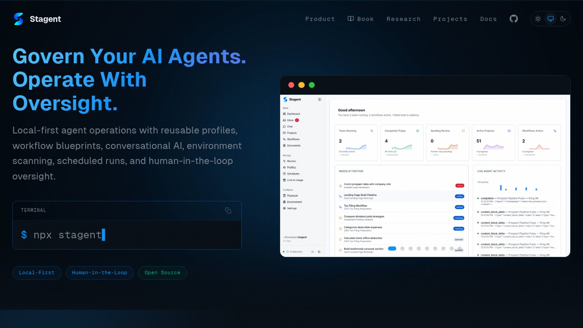 - –Stagent's signal is architectural: one runtime registry, inbox approvals, reusable profiles, schedules, and cost governance around Claude and Codex.