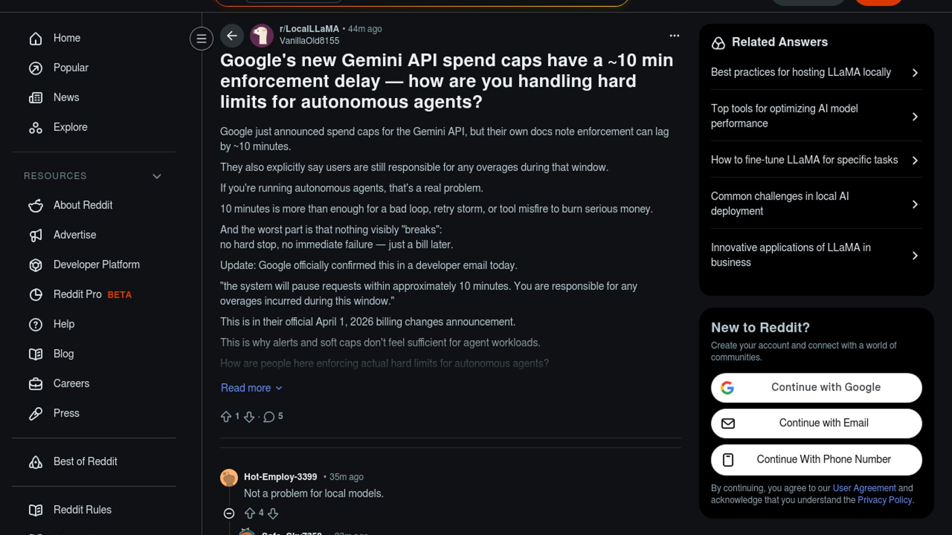 Google's Gemini API billing docs say project-level spend caps can lag by about 10 minutes because billing data processing is delayed, and billing-account tier caps are set to start enforcing on April 1, 2026. For agentic workloads, that means a nominally hard budget cap can still leave room for a real overrun.
