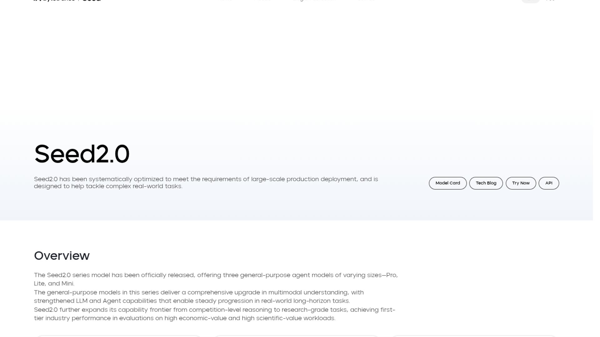ByteDance positions Seed2.0 as a production-grade multimodal model family for long-horizon agent work, with Pro, Lite, Mini, and a dedicated Code model. The release emphasizes stronger document, chart, video, coding, and search performance while pushing Seed deeper into Doubao, TRAE, and Volcano Engine.