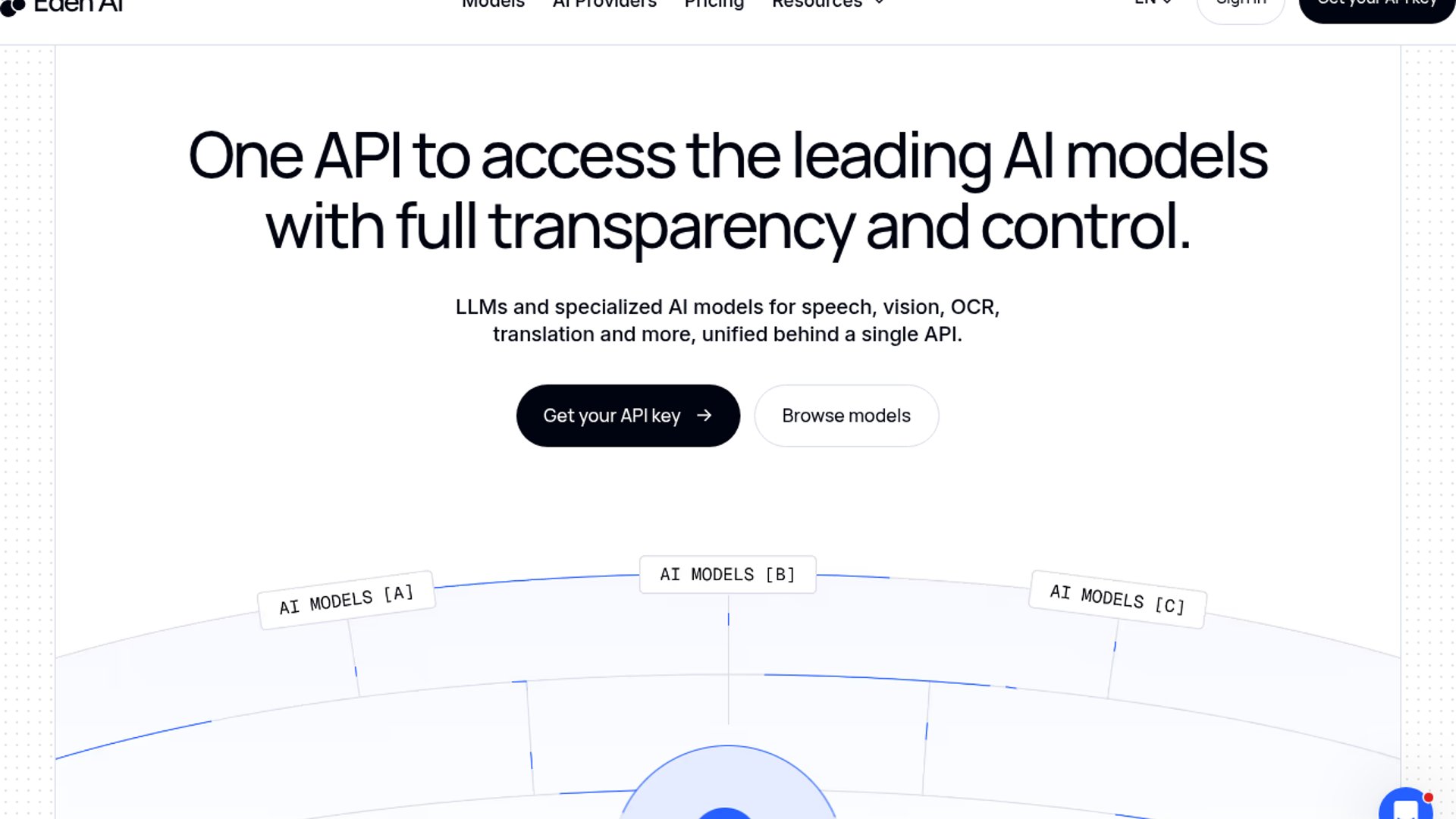 Eden AI provides a unified API to access 500+ models across text, vision, and speech modalities. It targets developers needing production-ready workflows with smart routing, regional control, and automatic fallbacks.