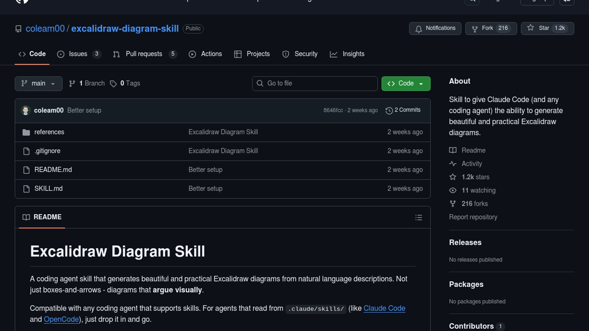 Excalidraw Diagram Skill is an open-source Claude Code skill that converts natural-language prompts into structured Excalidraw diagrams and then validates rendered output with a Playwright loop before delivery. The workflow, highlighted in Cole Medin’s video, focuses on producing presentation-ready diagrams with less manual cleanup.