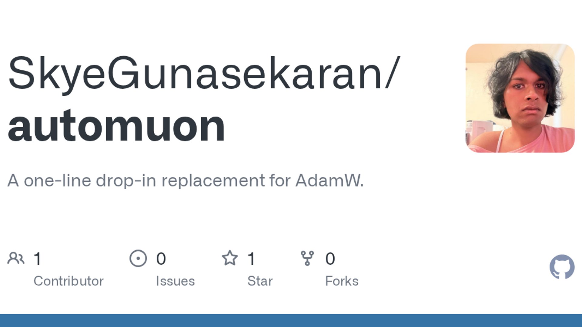 Final check on tags: `automuon, optimizer, pytorch, mlops, open-source, research`.