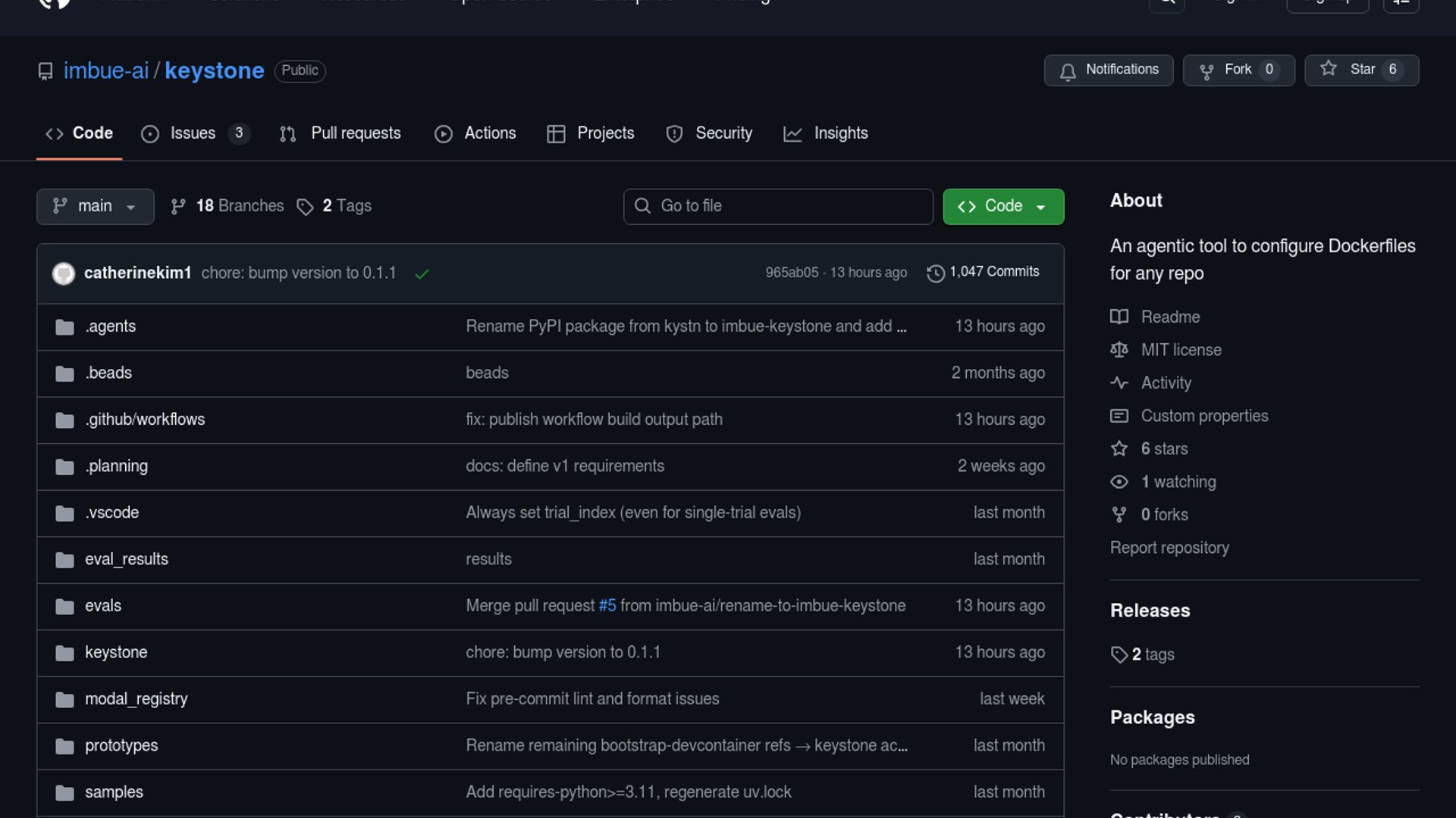 Imbue's new open-source tool unleashes an AI agent inside a Modal sandbox to automatically figure out and generate a working devcontainer.json, Dockerfile, and test runner for any Git repository. It provides a safe, reproducible path to self-configuring codebases without risking modifications to your local machine.