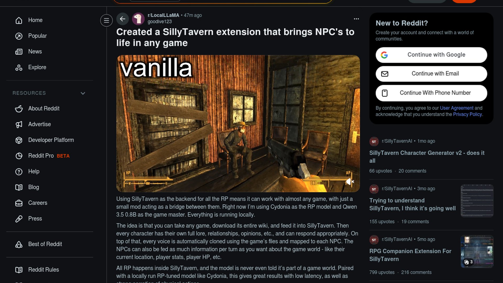 This custom bridge pipes game lore, live state, and cloned voices into SillyTavern, then uses Cydonia for roleplay and Qwen 3.5 0.8B as a tiny game-master router. It’s a local-first way to make NPCs feel reactive without forcing the story model into rigid commands.