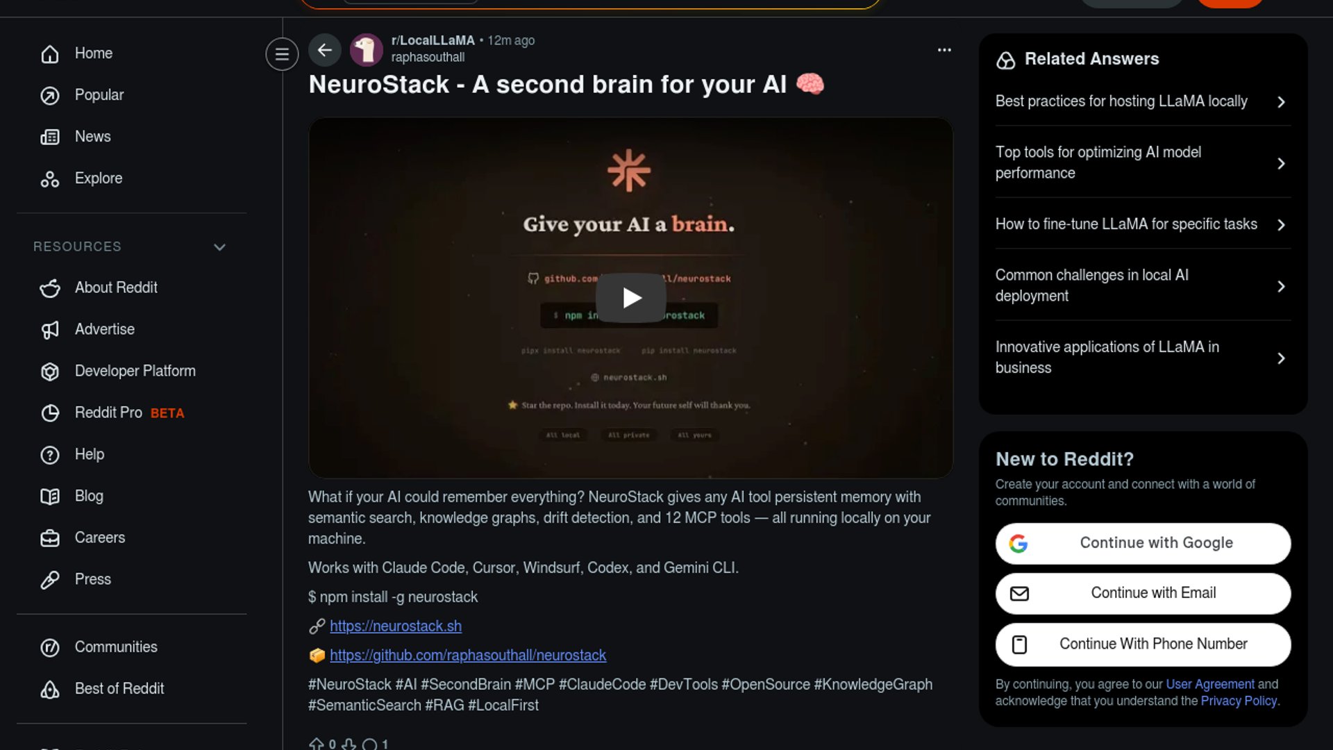 NeuroStack gives AI tools persistent local memory