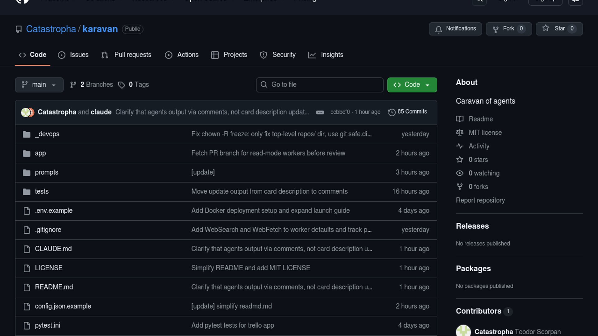 Karavan is an MIT-licensed Python and FastAPI framework that uses Trello boards as the queue, state store, and UI for autonomous agent workflows coordinated through Telegram. It runs on Claude Agent SDK today, but the repo is structured so the LLM layer can be swapped while the routing, retries, webhooks, and multi-board pipeline logic stay intact.
