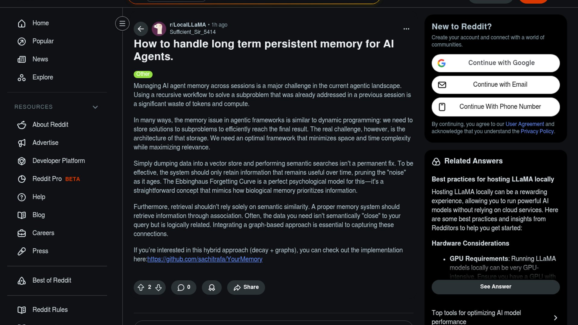 YourMemory is an open-source memory layer for AI agents that implements the Ebbinghaus Forgetting Curve to automatically prune irrelevant data while using a hybrid vector-graph engine for context-aware retrieval. By mimicking biological memory systems, it solves the "context bloat" problem that plagues current agentic frameworks.