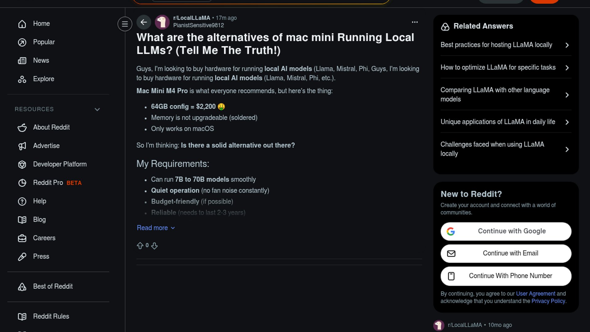 This Reddit post asks for honest alternatives to the Mac mini M4 Pro for running local LLMs, especially if you want 7B to 70B models without paying Apple’s premium. The real question is whether cheaper mini PCs can match Apple Silicon’s mix of memory bandwidth, silence, and plug-and-play setup.