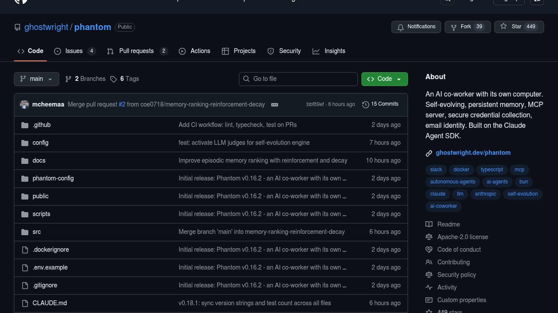 Phantom is an open-source AI coworker built on the Claude Agent SDK, with persistent memory, MCP support, secure credential collection, and an email identity. It is aimed at long-running autonomous work on a dedicated machine rather than one-off chat sessions.