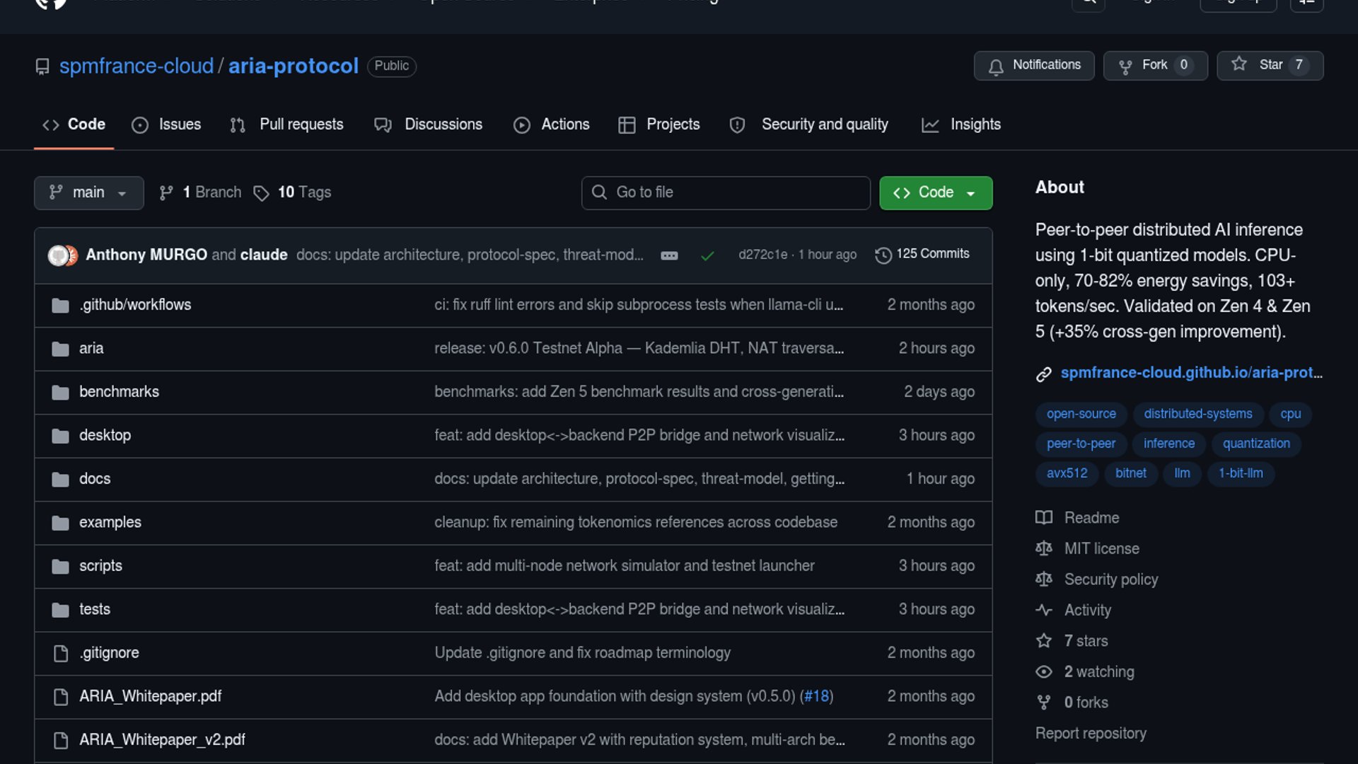 ARIA Protocol v0.6.0 enables distributed 1-bit P2P inference