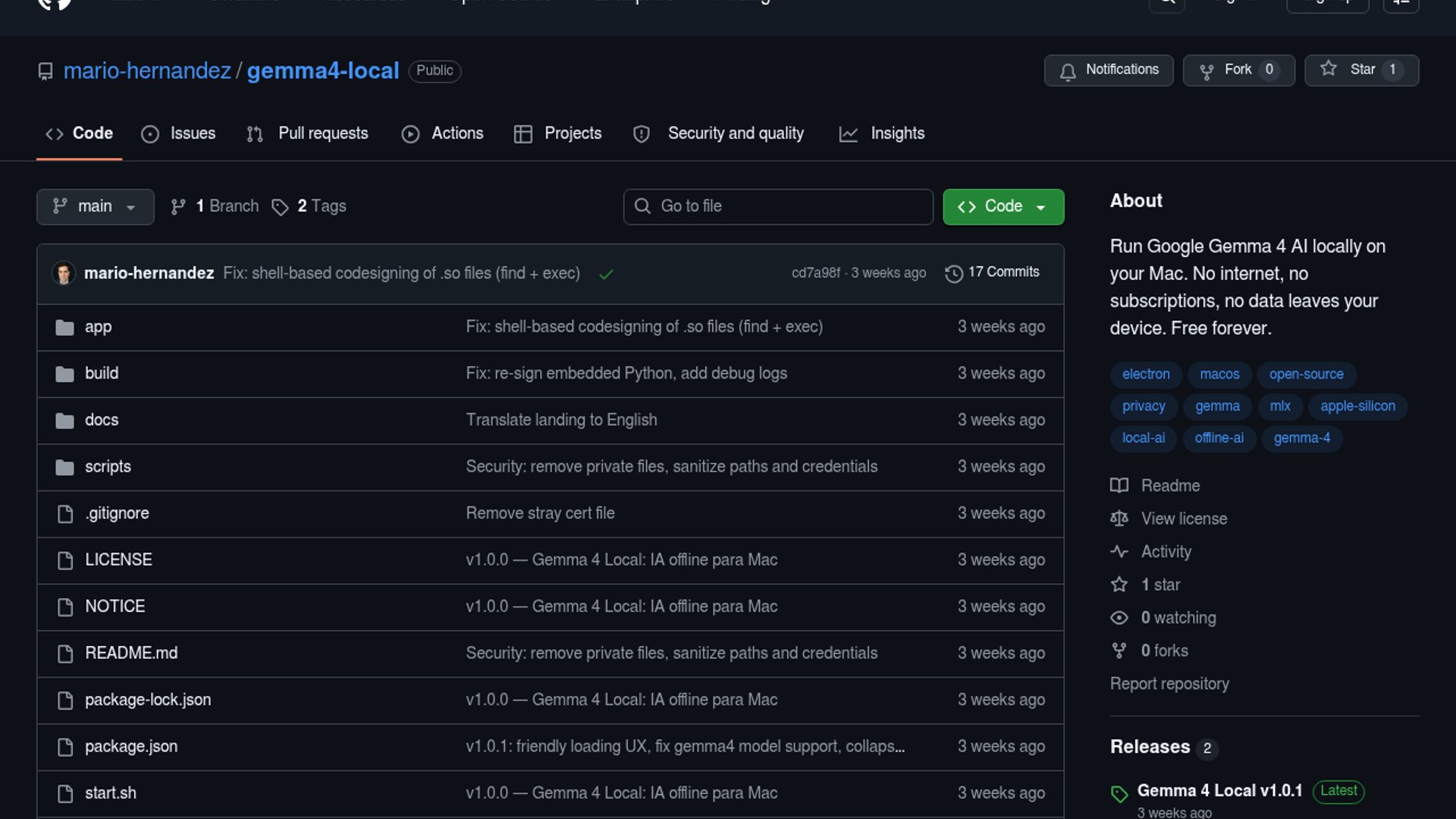 Gemma4 Local is an open-source Electron app for running Gemma 4 entirely on a Mac through Apple's MLX stack. It targets offline coding sessions, so you can vibe-code without Wi-Fi, cloud APIs, or leaving your machine.