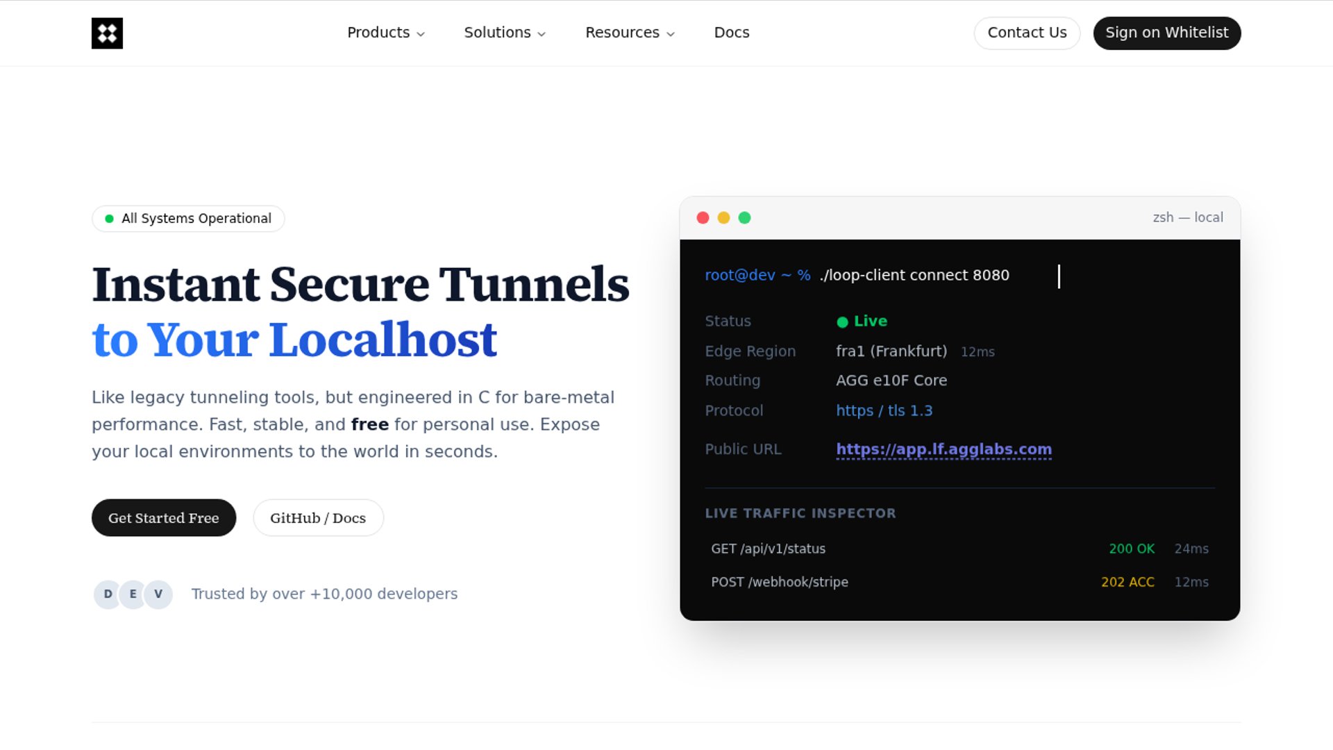 AGG Loop is a rebuilt localhost tunneling service, formerly Deposure, aimed at developers who need quick public URLs for local services without setup friction. The pitch is straightforward: instant tunnels, hardened security, zero configuration, no bandwidth limits, and a forever-free model backed by Aeolink Group’s lab program.