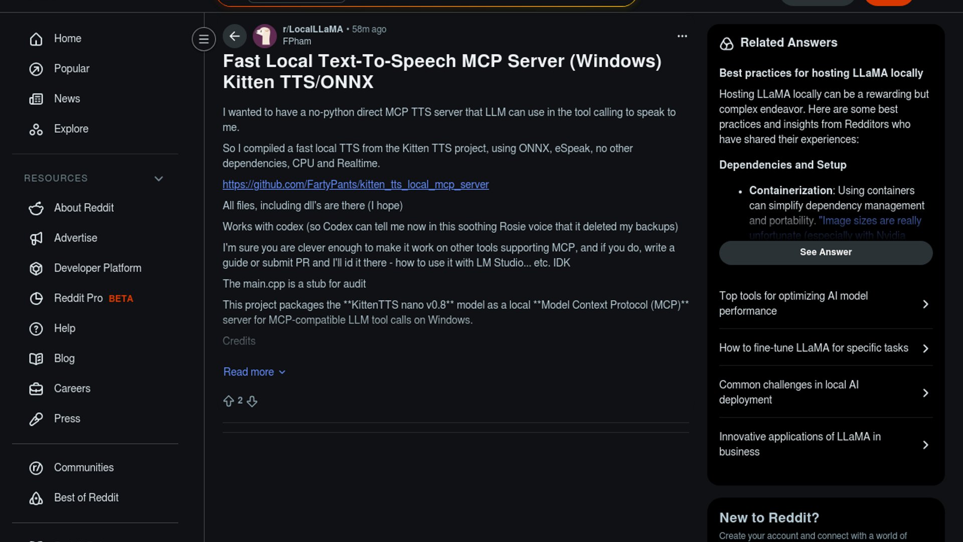 - –The project wraps an existing TTS model in a small native C++ MCP server instead of shipping yet another Python-heavy prototype.