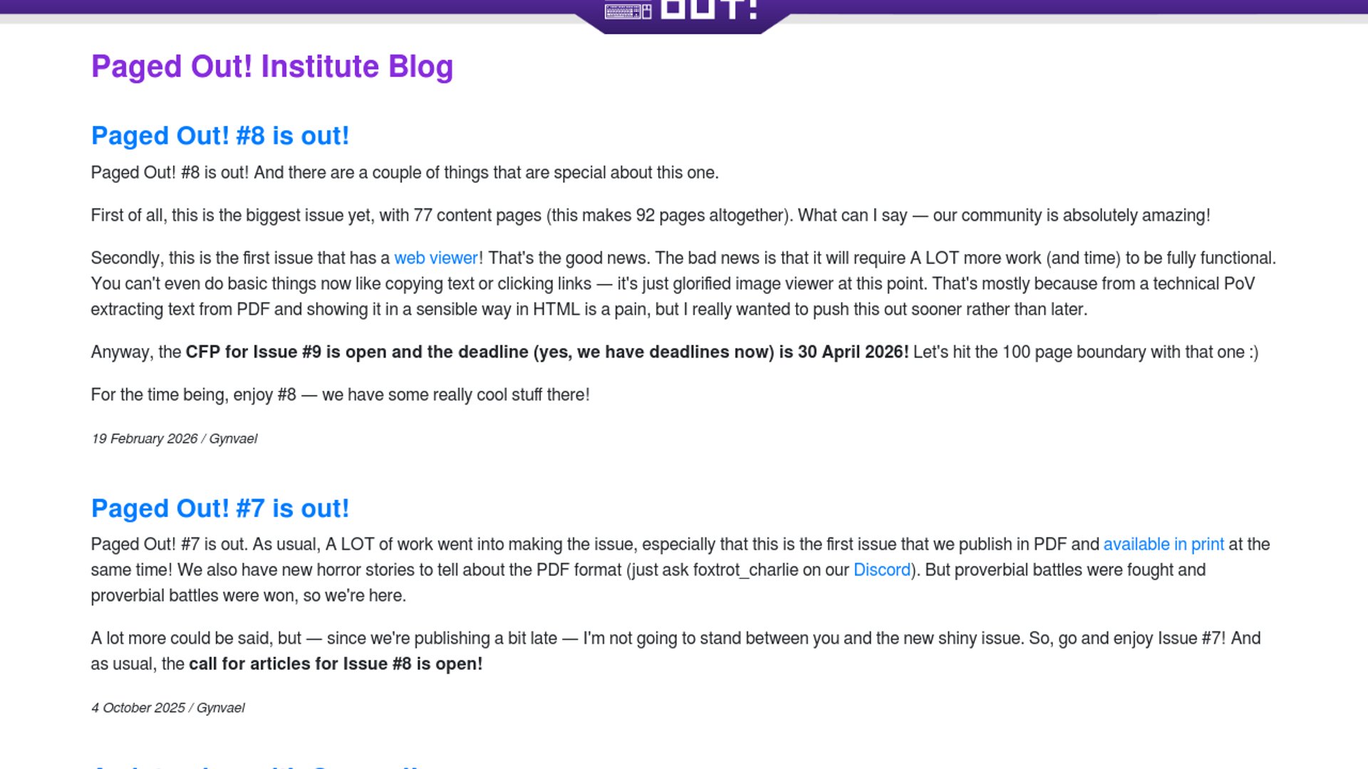 Paged Out! #8 ships, adds web viewer