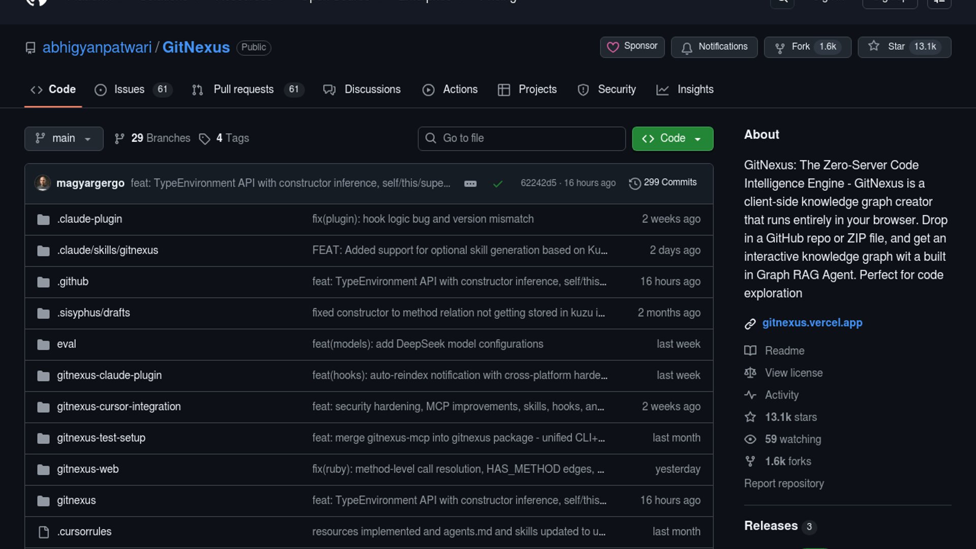 - –Supports 13 languages and 30+ node types; the 9-phase ingestion pipeline is unusually thorough for an OSS project from a solo developer