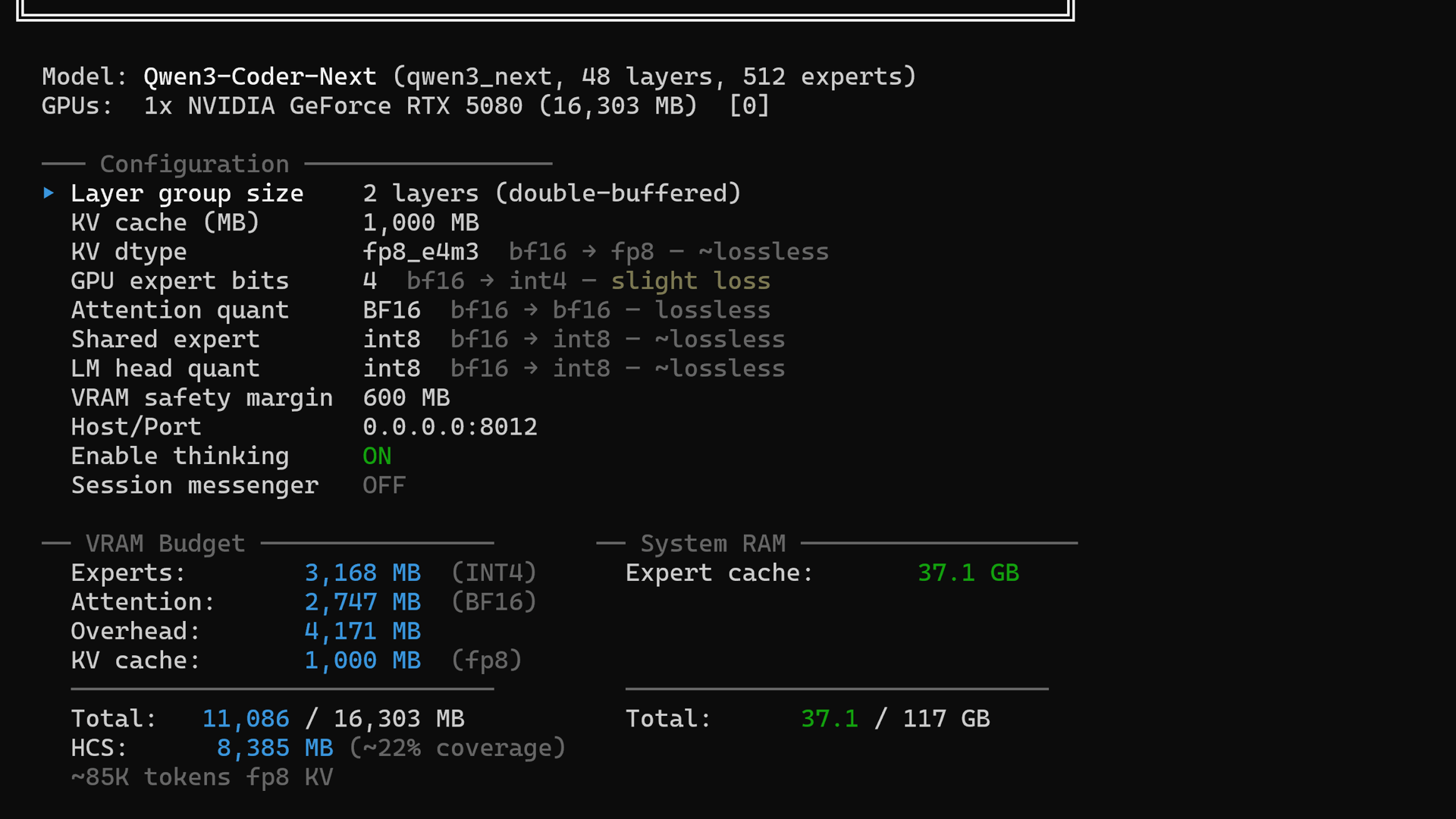 - –Claimed 16GB 5080 performance on Qwen3-Coder-Next beating a 32GB 5090 llama.cpp setup reinforces Krasis’s “stream through GPU, avoid CPU bottlenecks” design.