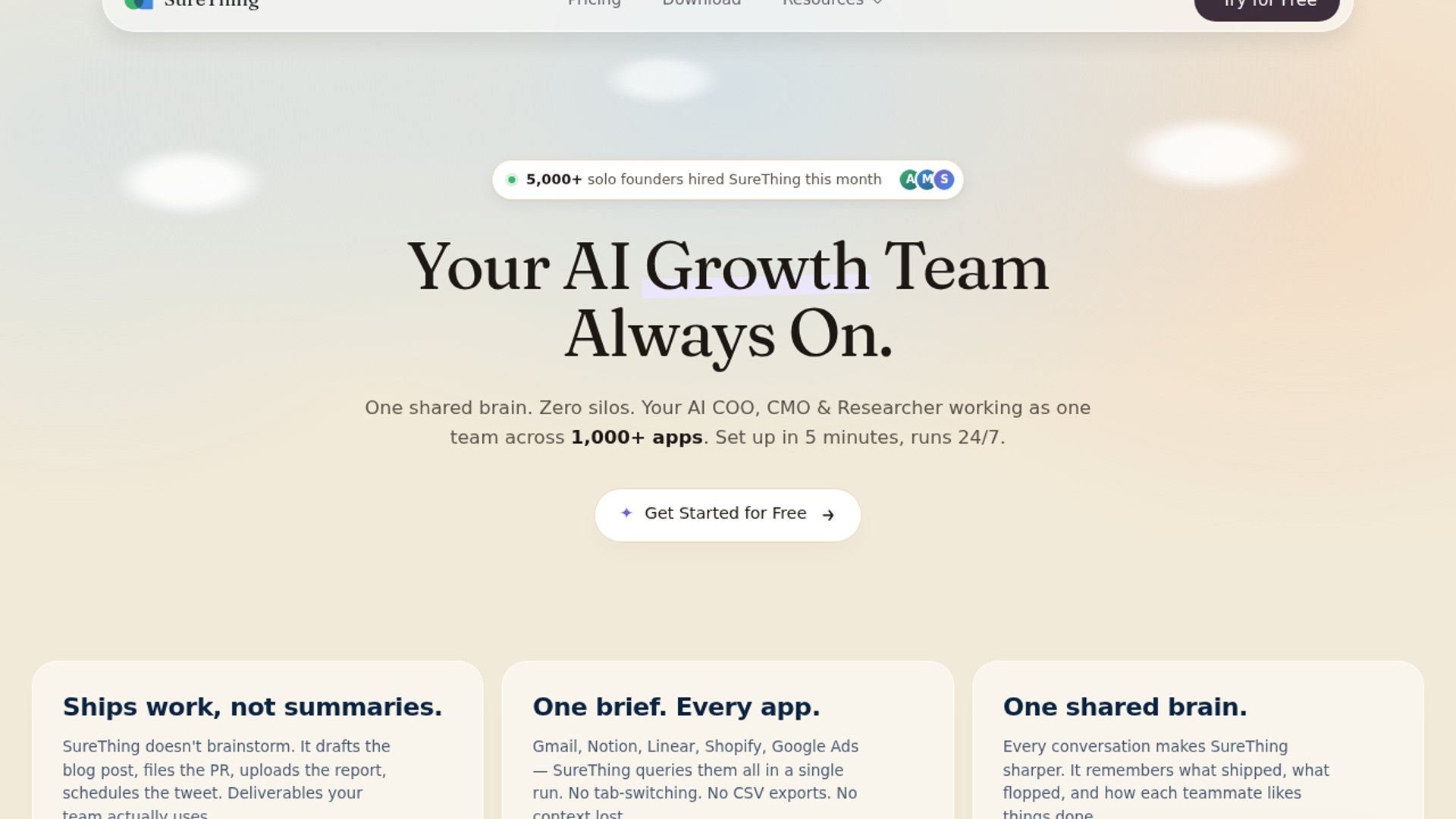 SureThing introduces a General AI Agency offering specialized agents that share persistent memory and execute cross-platform workflows. It shifts the AI paradigm from isolated task bots to an integrated, autonomous growth team for founders.