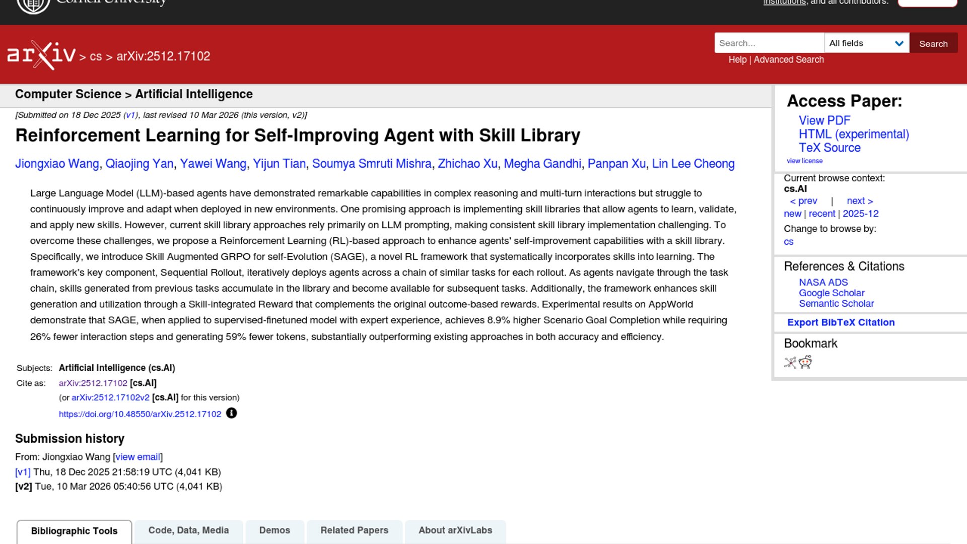SAGE (Skill Augmented GRPO for self-Evolution) is an RL framework from AWS Agentic AI and UW-Madison that trains LLM agents to accumulate reusable skills across tasks. On the AppWorld benchmark, it cuts interaction steps by 26% and token generation by 59% versus baseline GRPO, while outperforming prompted GPT-4o and Claude Sonnet by 3x on multi-step scenario completion.