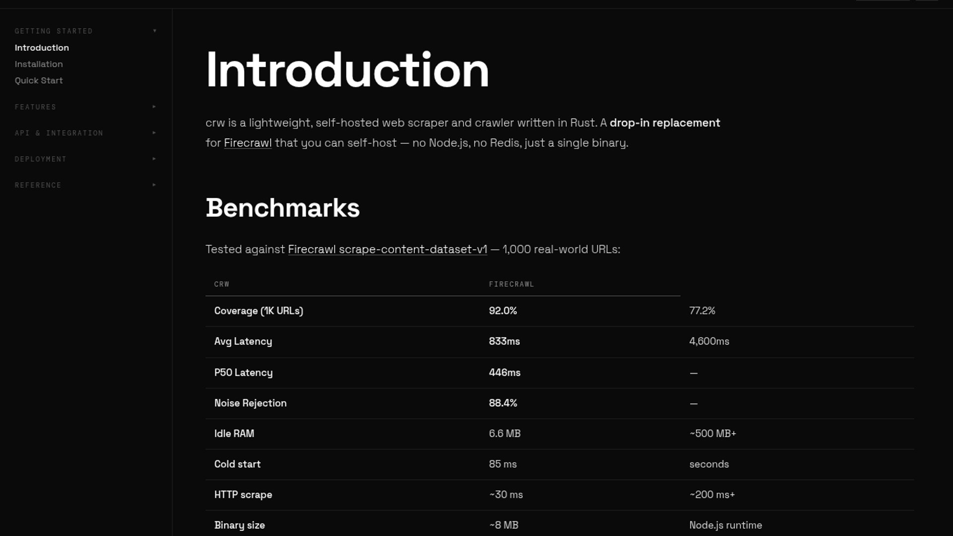 - –Firecrawl API compatibility makes CRW unusually easy to trial inside existing scraping, RAG, or agent pipelines