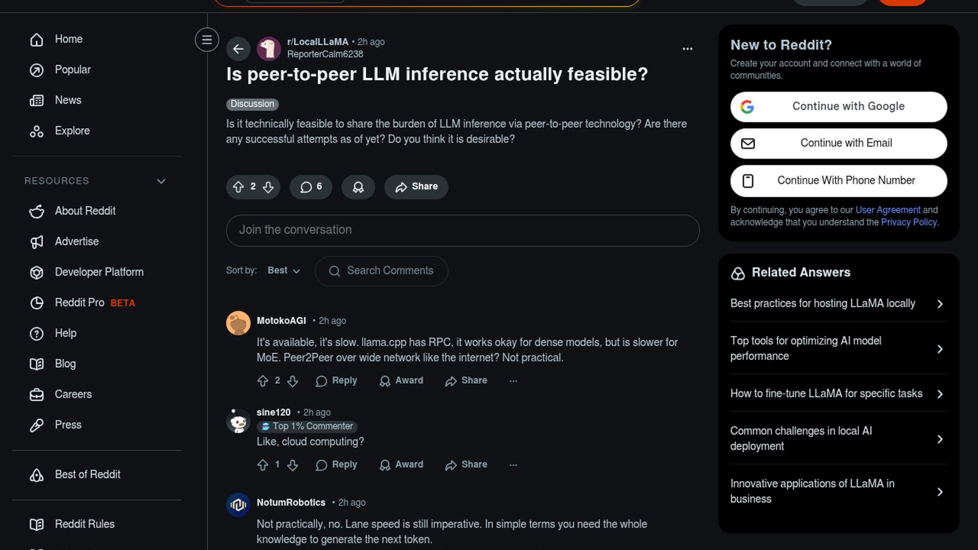 The Reddit thread asks whether LLM inference can be shared across peers, and the short answer is yes, but only in constrained setups. Existing systems like Petals, LocalAI, and Exo show it works, but network latency, orchestration, and model partitioning keep it from being a universal replacement for local or centralized serving.