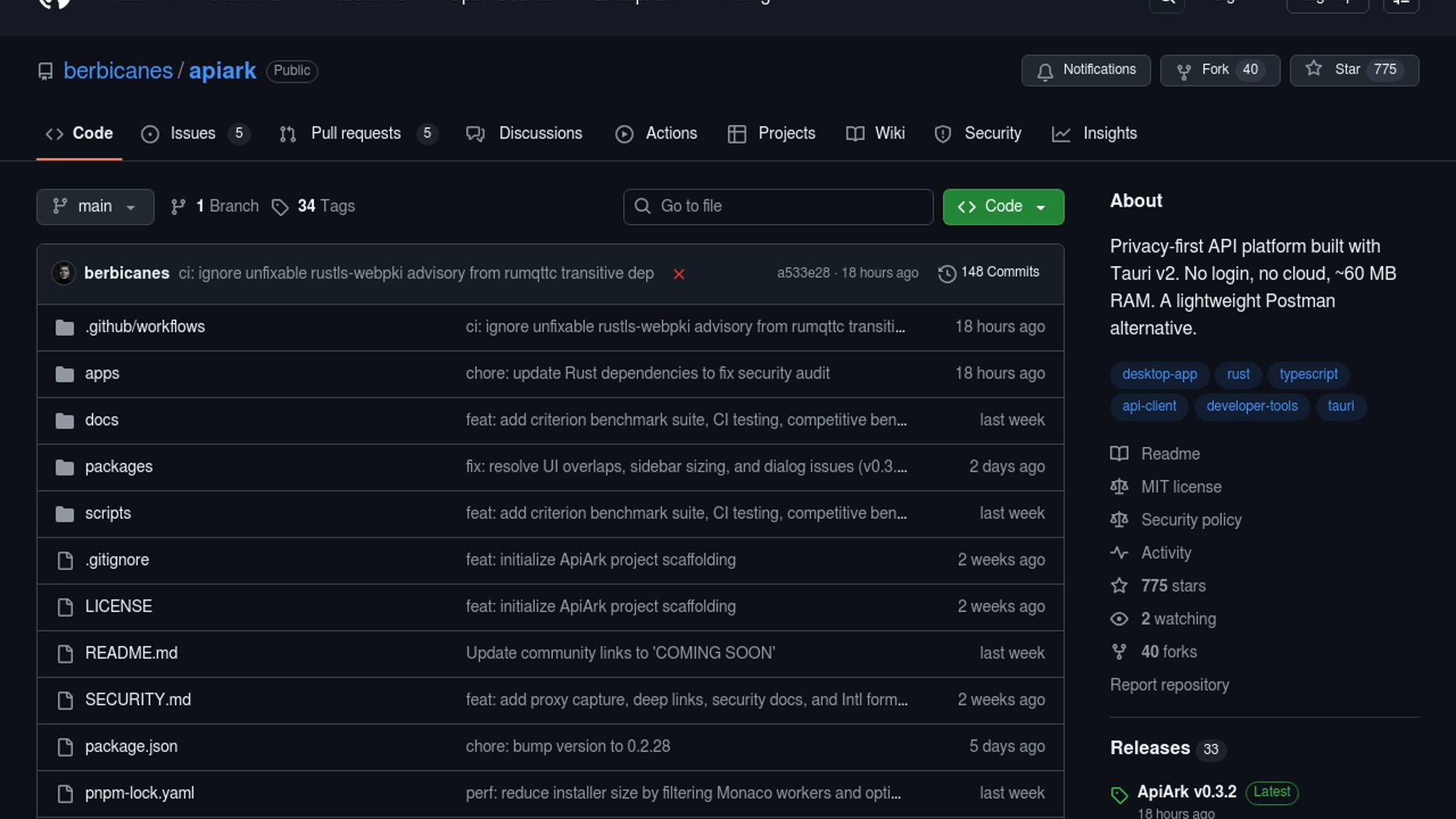 ApiArk's strongest pitch is not feature count, it's control: if your team already lives in Git, turning API collections into normal files removes a lot of friction. The hard part now is proving that the local-first story can hold up against mature incumbents on stability, polish, and ecosystem.