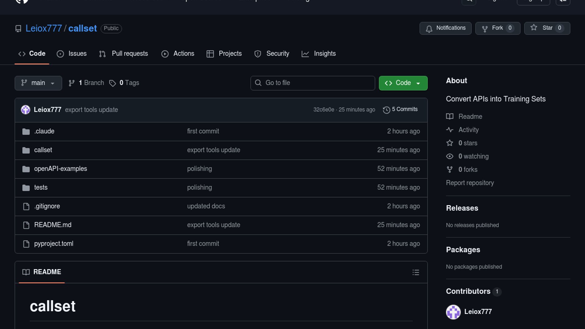 Callset is a CLI tool that converts OpenAPI specifications into high-quality, multi-turn synthetic training datasets in JSONL format. It automates diverse fine-tuning scenarios like multi-step logic and error handling, ensuring data integrity through a three-layer validation system.
