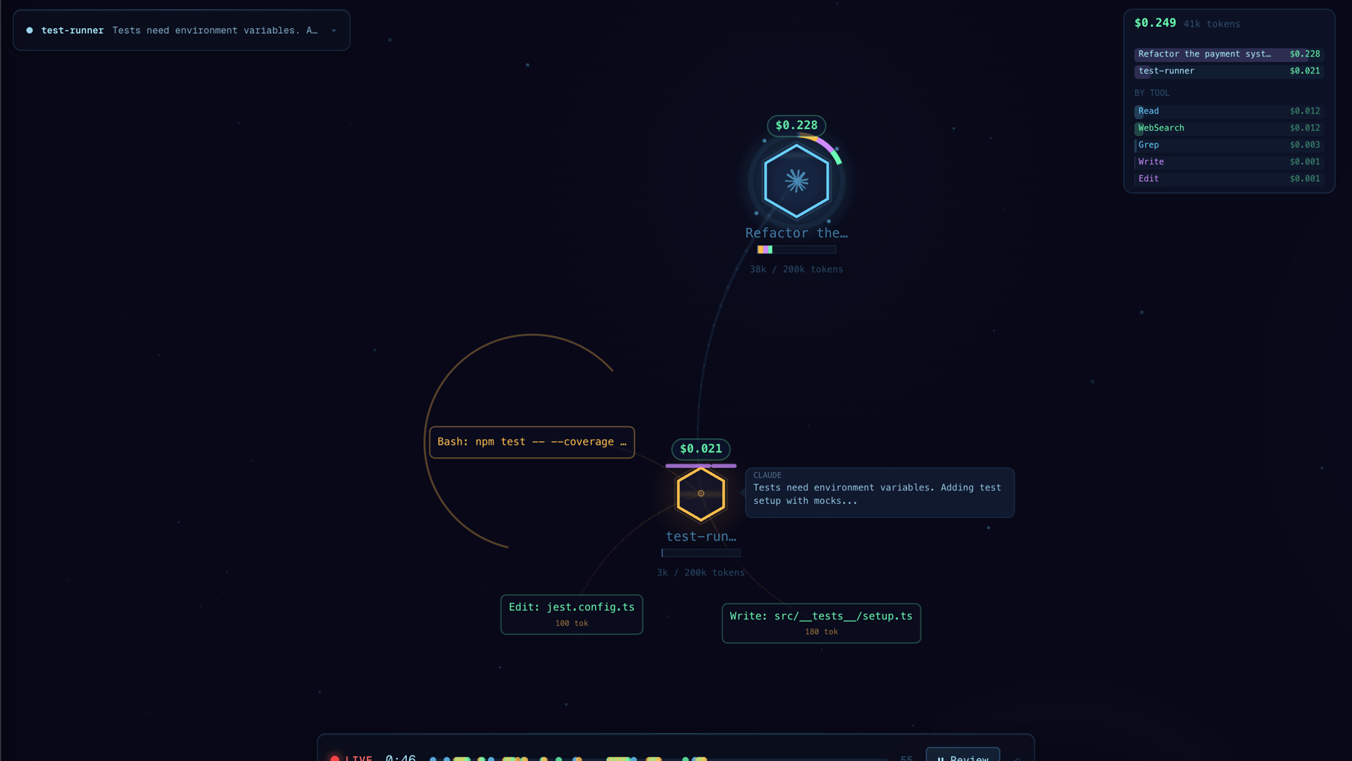 - –The live graph plus timeline/transcript view makes it easier to inspect coordination across subagents.
