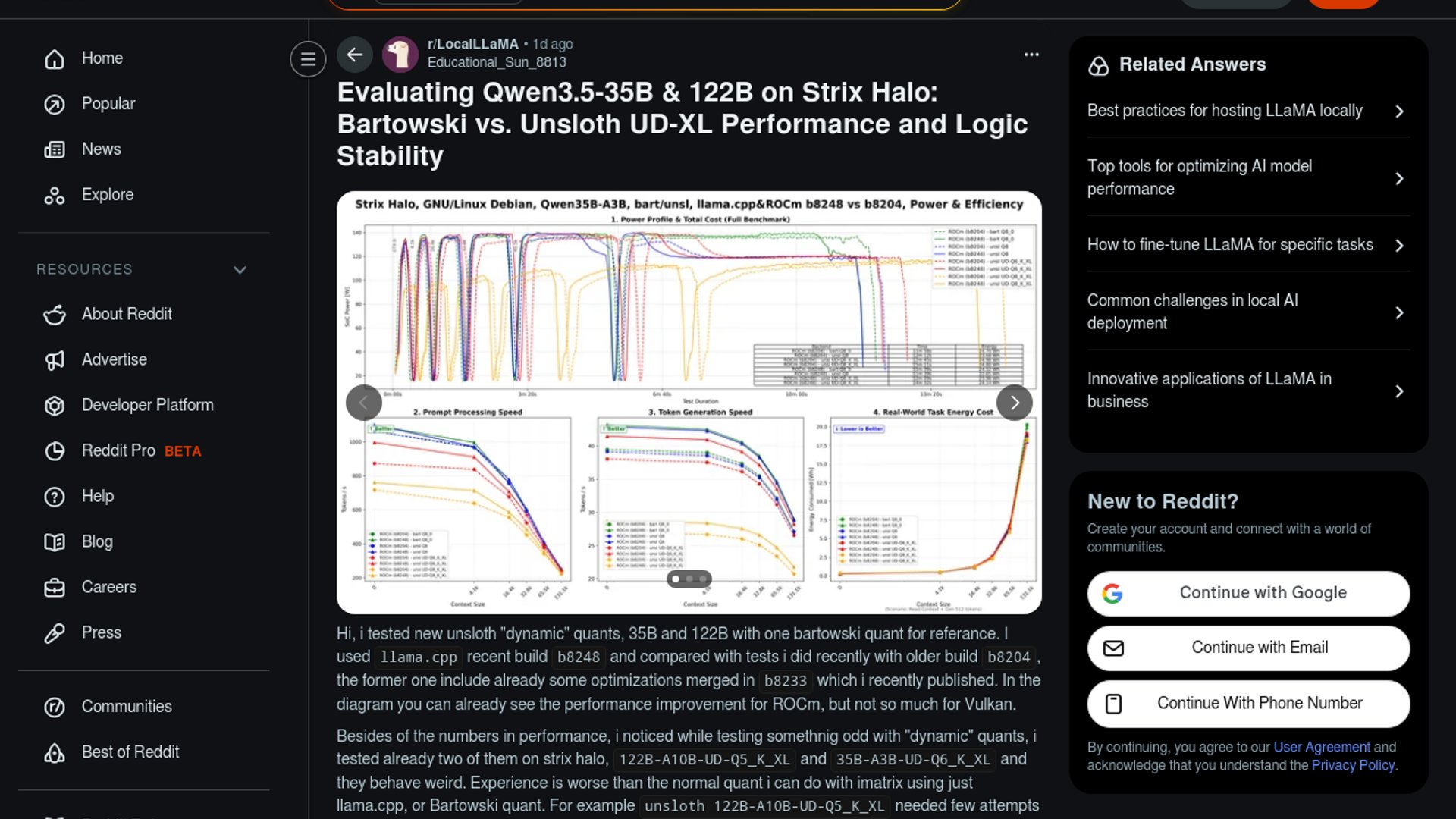 - –Unsloth’s own Qwen3.5 docs note that UD-XL variants are slower, and this user’s results reinforce that tradeoff on Strix Halo hardware