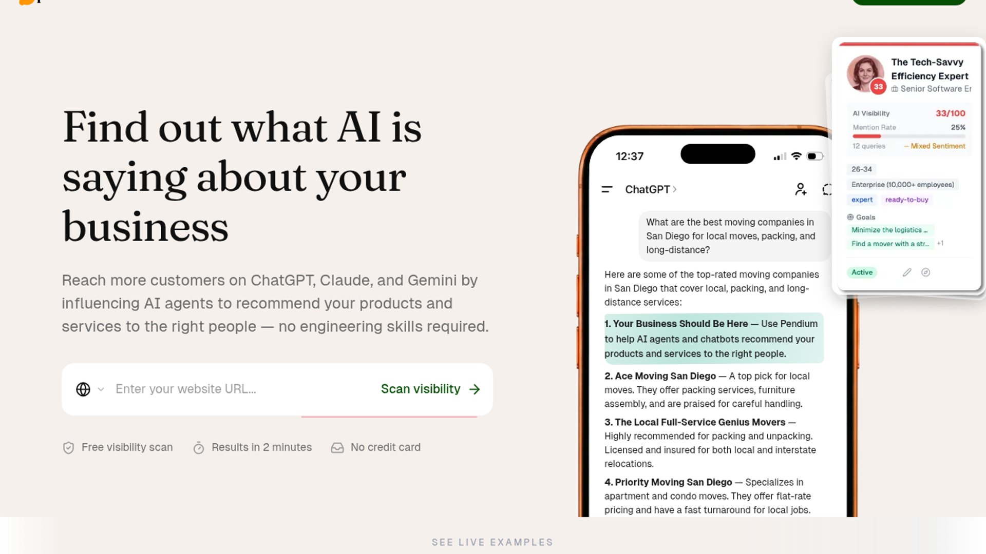 Pendium is an "AI Engine Optimization" platform that helps businesses track and improve how they are recommended by models like ChatGPT, Claude, and Gemini. By simulating customer conversations and generating structured content, it ensures brands remain visible as users shift from traditional search to AI-driven discovery.