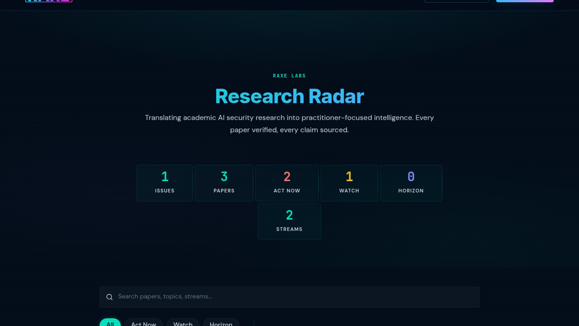 RAXE Labs launched Research Radar, a free bi-weekly digest that turns AI security papers into plain-language takeaways for practitioners and safety-minded readers. The first issue covers compound AI system attacks, LLMs automating adversarial ML, and agent-framework vulnerabilities, with claims linked back to the source papers.