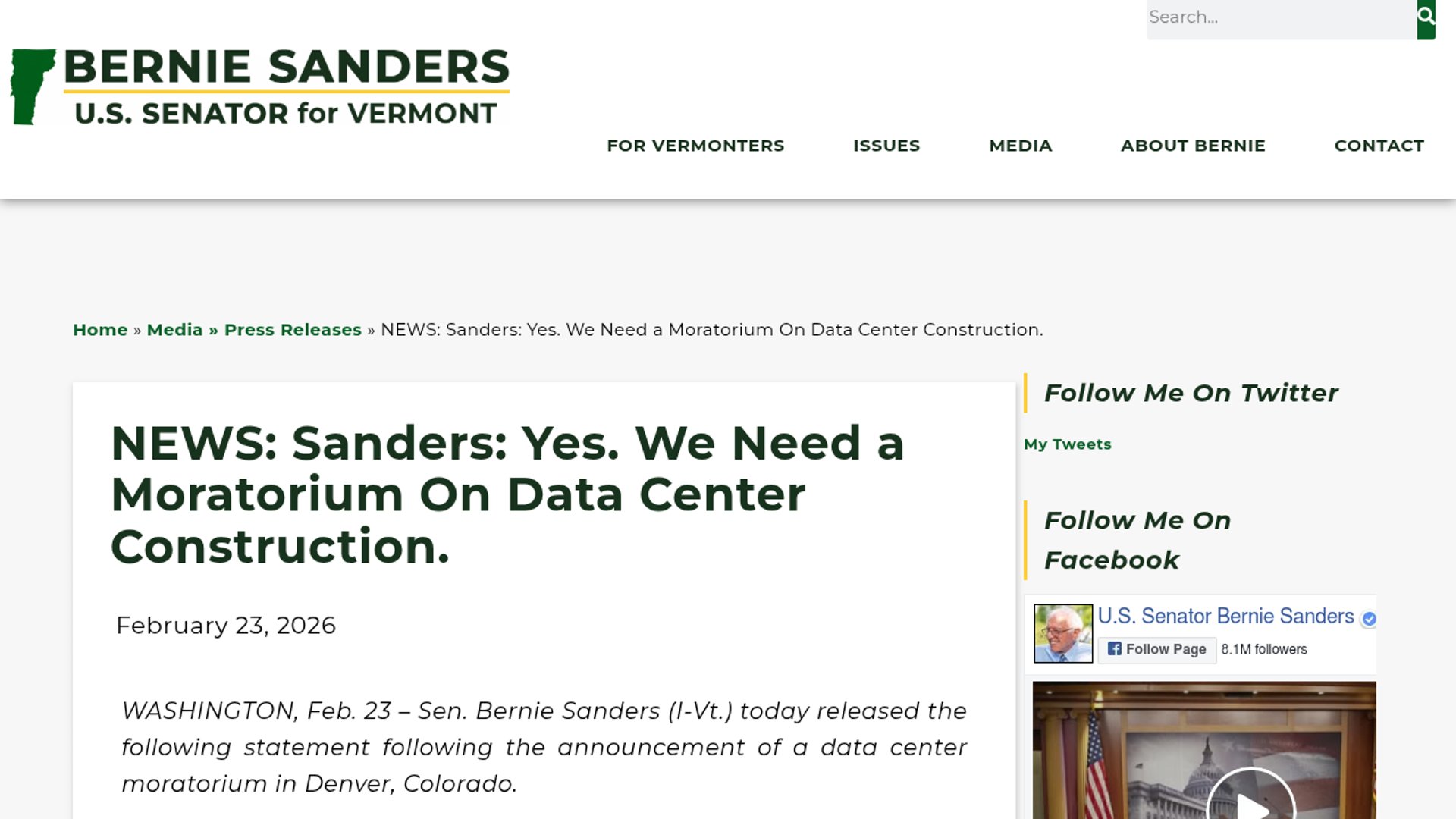 Sanders, AOC introduce AI Data Center Moratorium Act