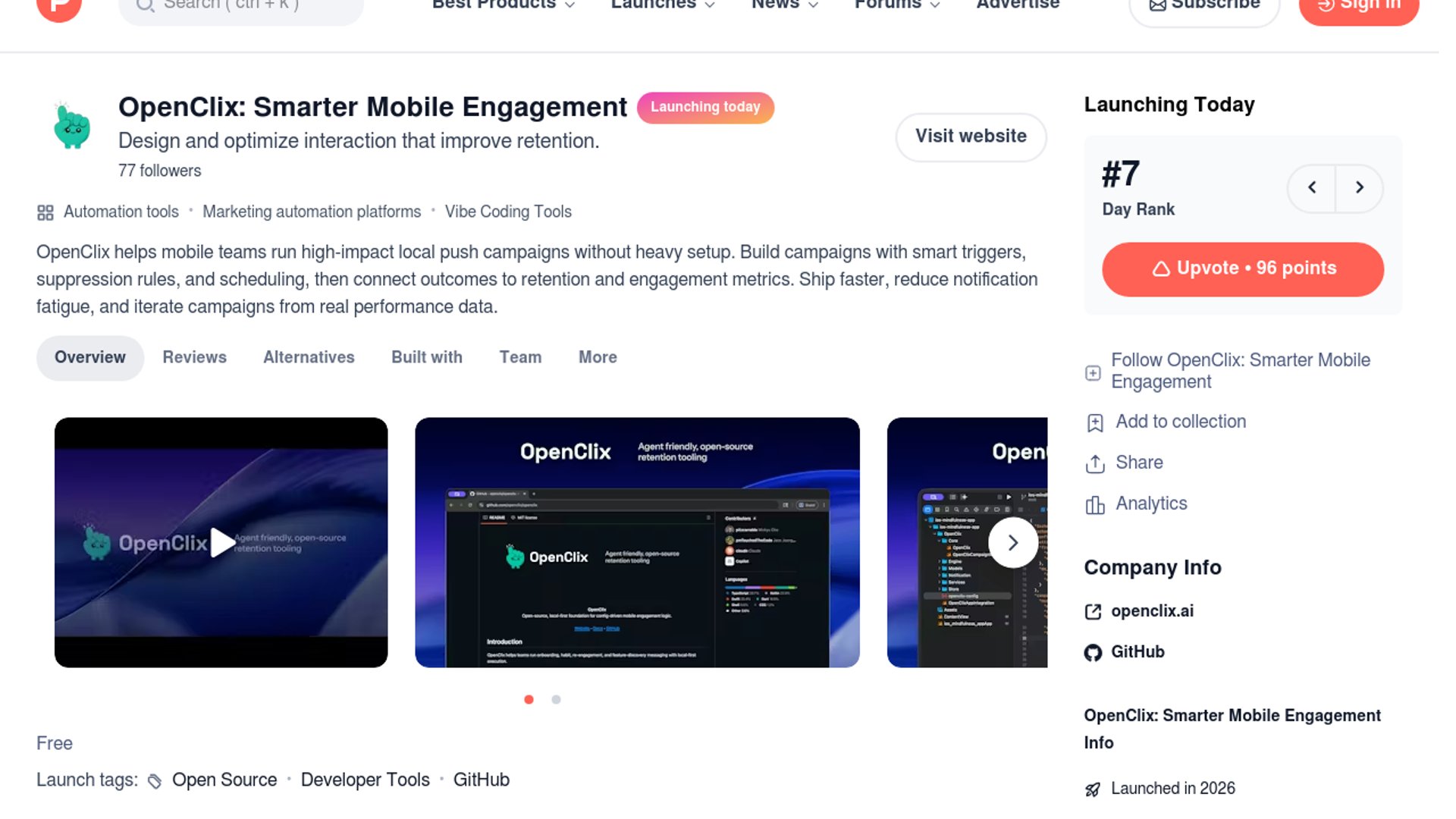 This is a smart counter-position to bloated mobile engagement platforms: OpenClix sells ownership, inspectability, and agent-friendly workflows instead of another black-box SDK.