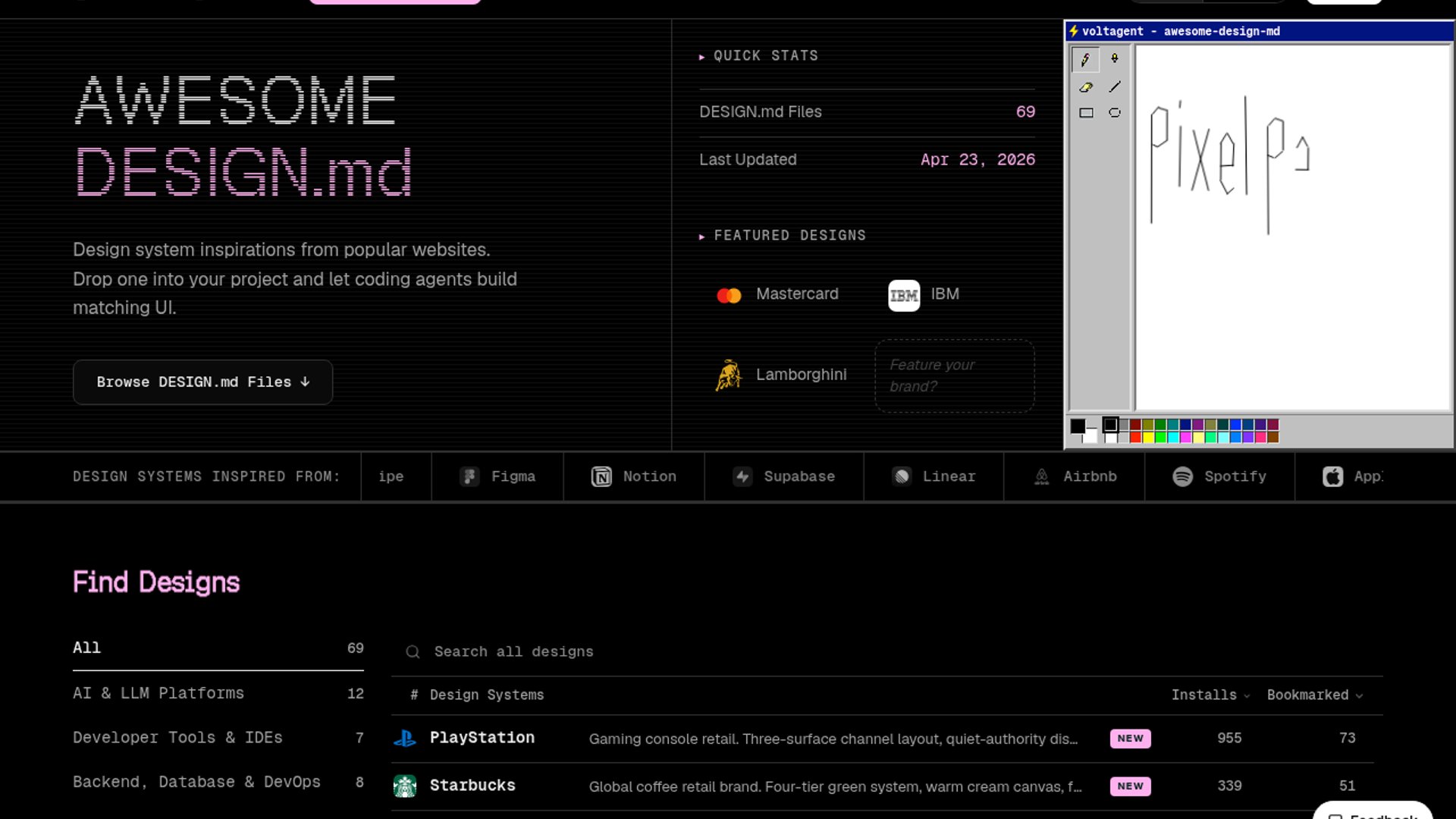 getdesign.md launches a library of 69 DESIGN.md files that package brand-inspired colors, typography, spacing, components, motion, and voice for AI coding agents. Developers can drop the markdown files into Cursor, Claude Code, Lovable, v0, or Bolt projects to steer generated UI toward recognizable design systems.