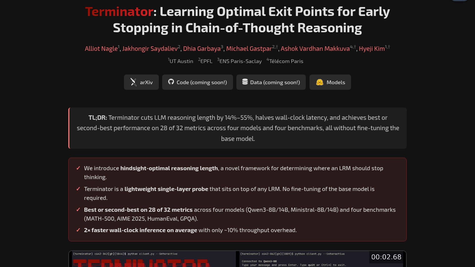 Solving the compute inefficiency of reasoning models is the next frontier for production AI; Terminator proves we can get o1-level accuracy at a fraction of the token cost. The framework reduces Chain-of-Thought length by 14% to 55% across benchmarks like MATH-500 and GPQA by monitoring internal hidden states for a "fingerprint" indicating a solved problem. A sliding window mechanism ensures termination is triggered by sustained confidence, offering significant cost savings for models like DeepSeek-R1.