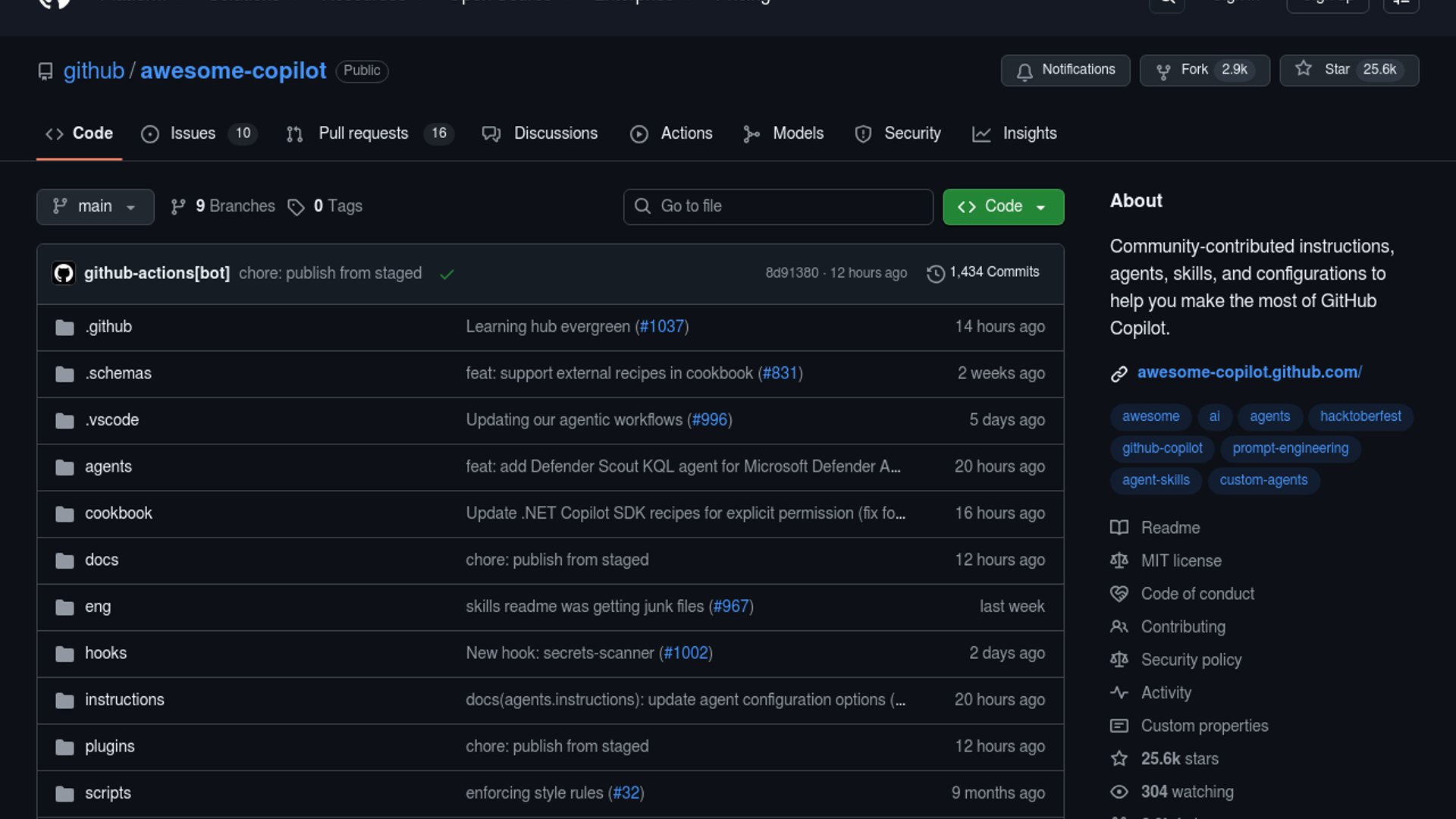 Awesome GitHub Copilot is a fast-growing, community-maintained index of reusable agents, skills, instructions, hooks, workflows, and plugins for Copilot users, highlighted in Burke Holland’s Agent Skills video as a practical place to discover ready-made packages. The project now pairs the GitHub repo with a searchable website and learning hub, making it easier for developers to find and install skill bundles.