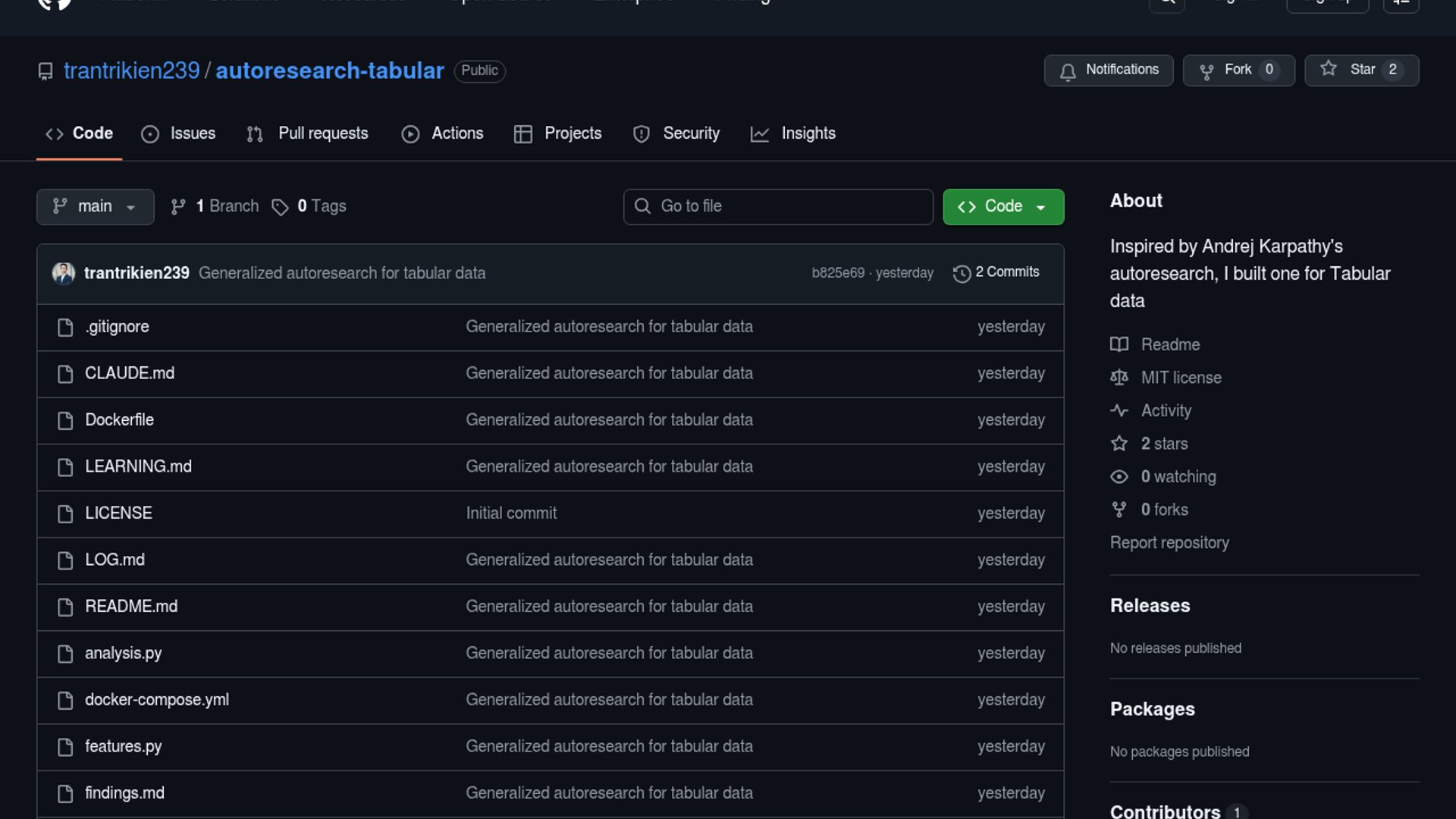 AutoResearch Tabular is an open-source Claude Code-powered agent for tabular binary classification tasks. It iterates through analysis and experiment cycles by editing feature engineering and model scripts while using expanding time windows to prevent leakage.