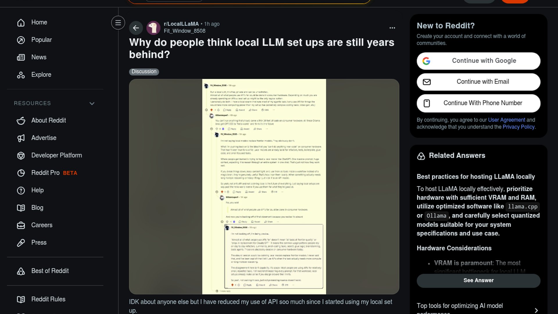A Reddit discussion in r/LocalLLaMA argues that well-structured local agent workflows can reduce dependence on frontier APIs, especially when narrower tasks, retrieval, tooling, and fallback paths compensate for weaker models. The thread also surfaces the hard limit: 70B-class local setups can be useful, but they still lag frontier cloud models on broad reasoning and large-codebase work.