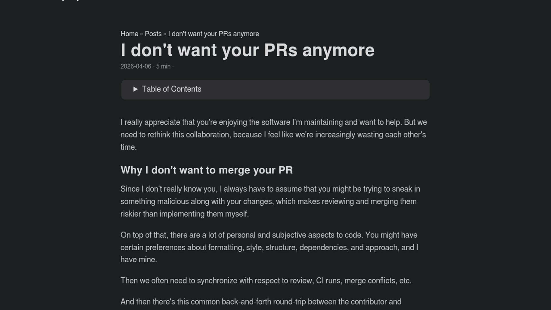 - –The uncomfortable part is that this could make projects more maintainer-centric, even as LLMs make personal forks and custom variants easier