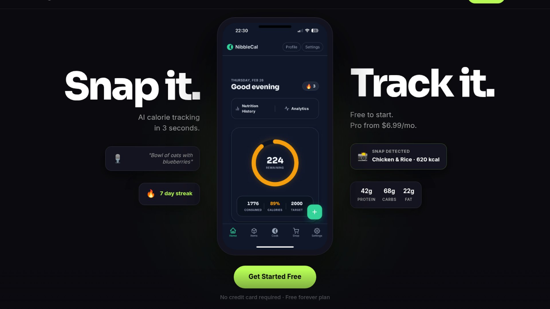 Promising idea, but the moat is trust, not demo magic: if the app is wrong on sauces, mixed dishes, or portion size, users will revert to manual logging fast.