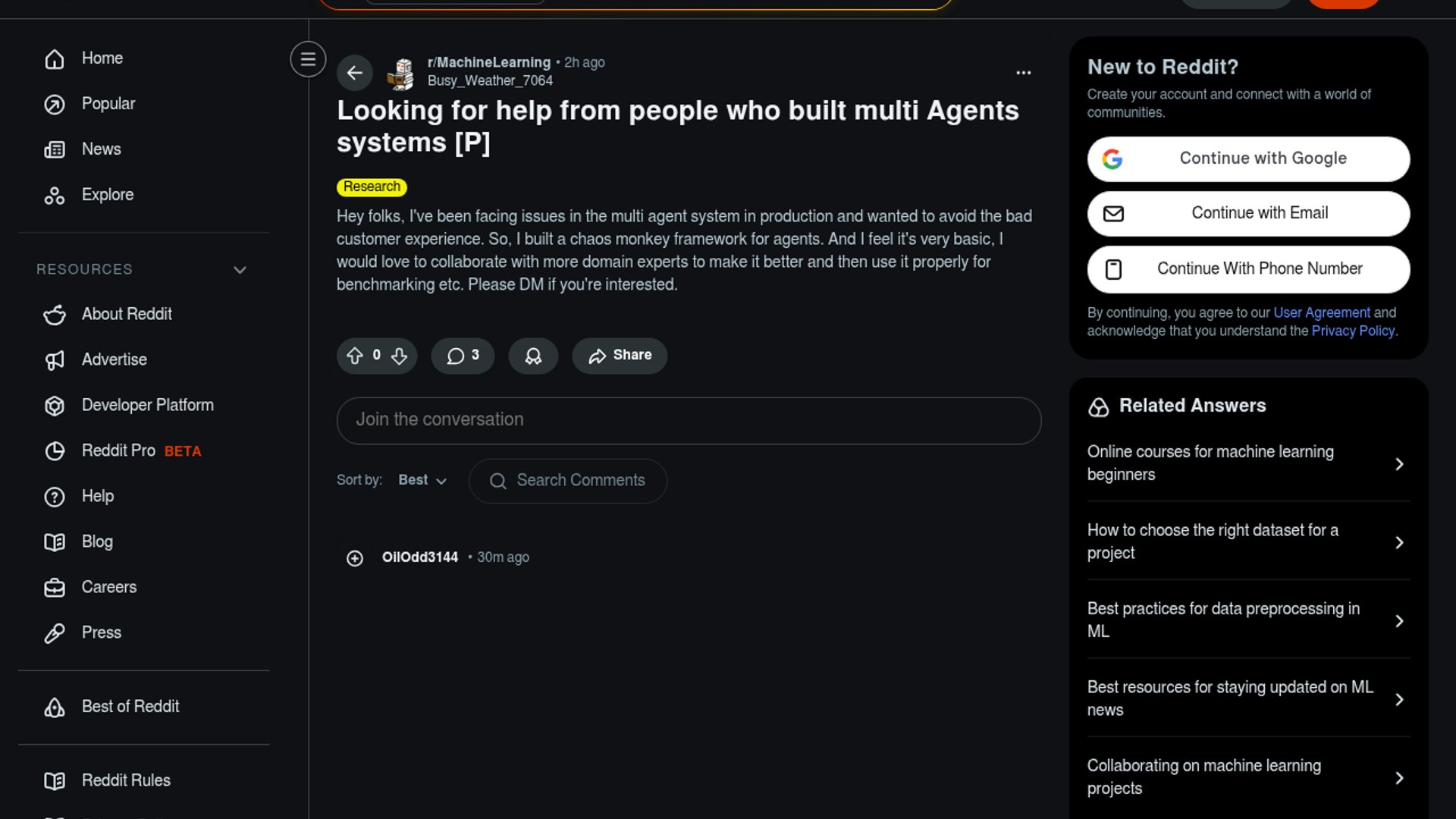This Reddit post is an open call from the builder of a chaos-engineering framework for AI agents. The project is aimed at stress-testing multi-agent systems under failure conditions so teams can catch bad user experiences before they reach production, and the author is looking for domain experts to help improve the framework and turn it into a more rigorous benchmarking tool.