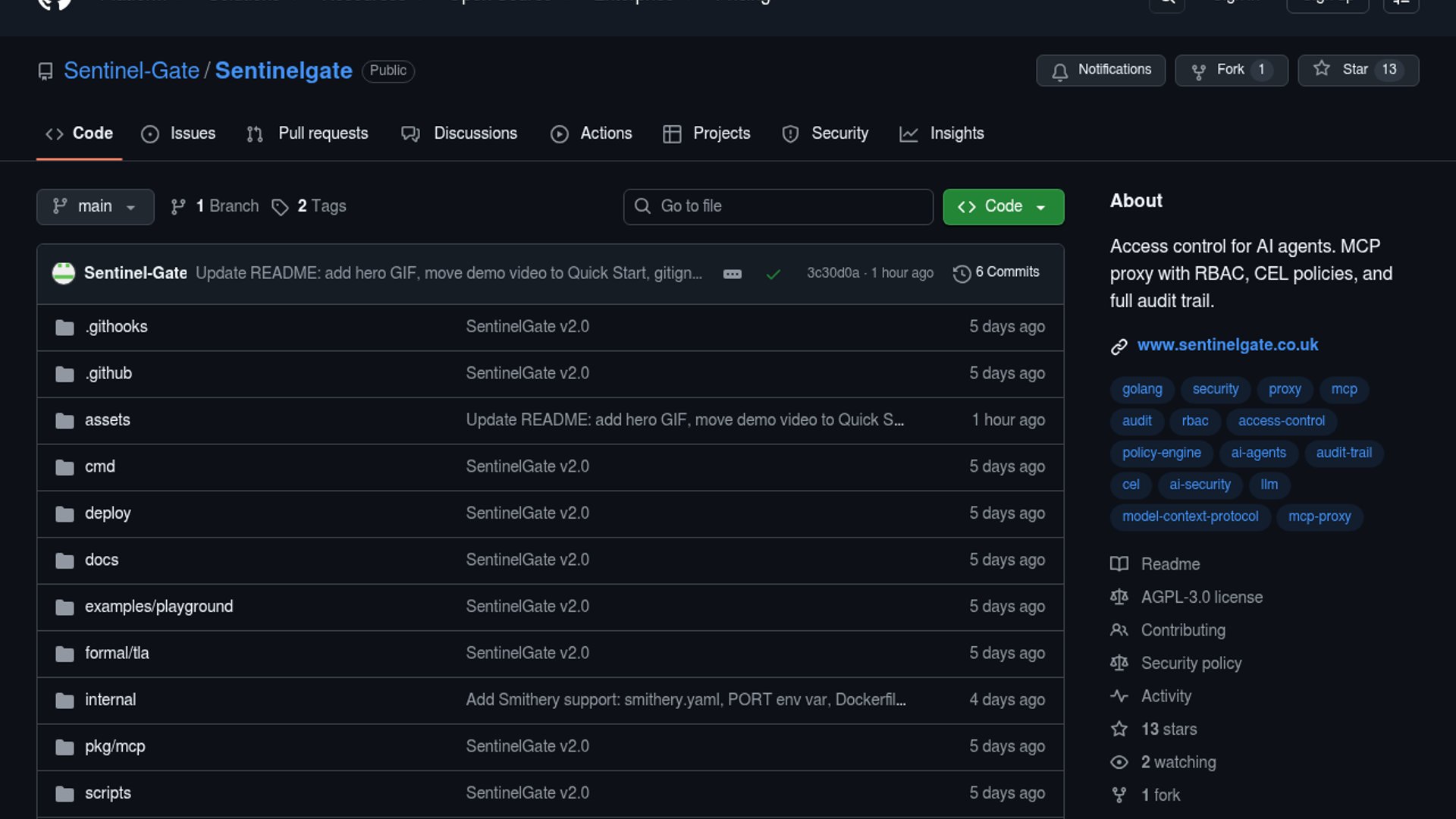 SentinelGate is an open-source access control proxy for the Model Context Protocol (MCP) that uses CEL-powered deterministic rules to secure tool calls, scan for PII, and prevent malicious actions by AI agents.