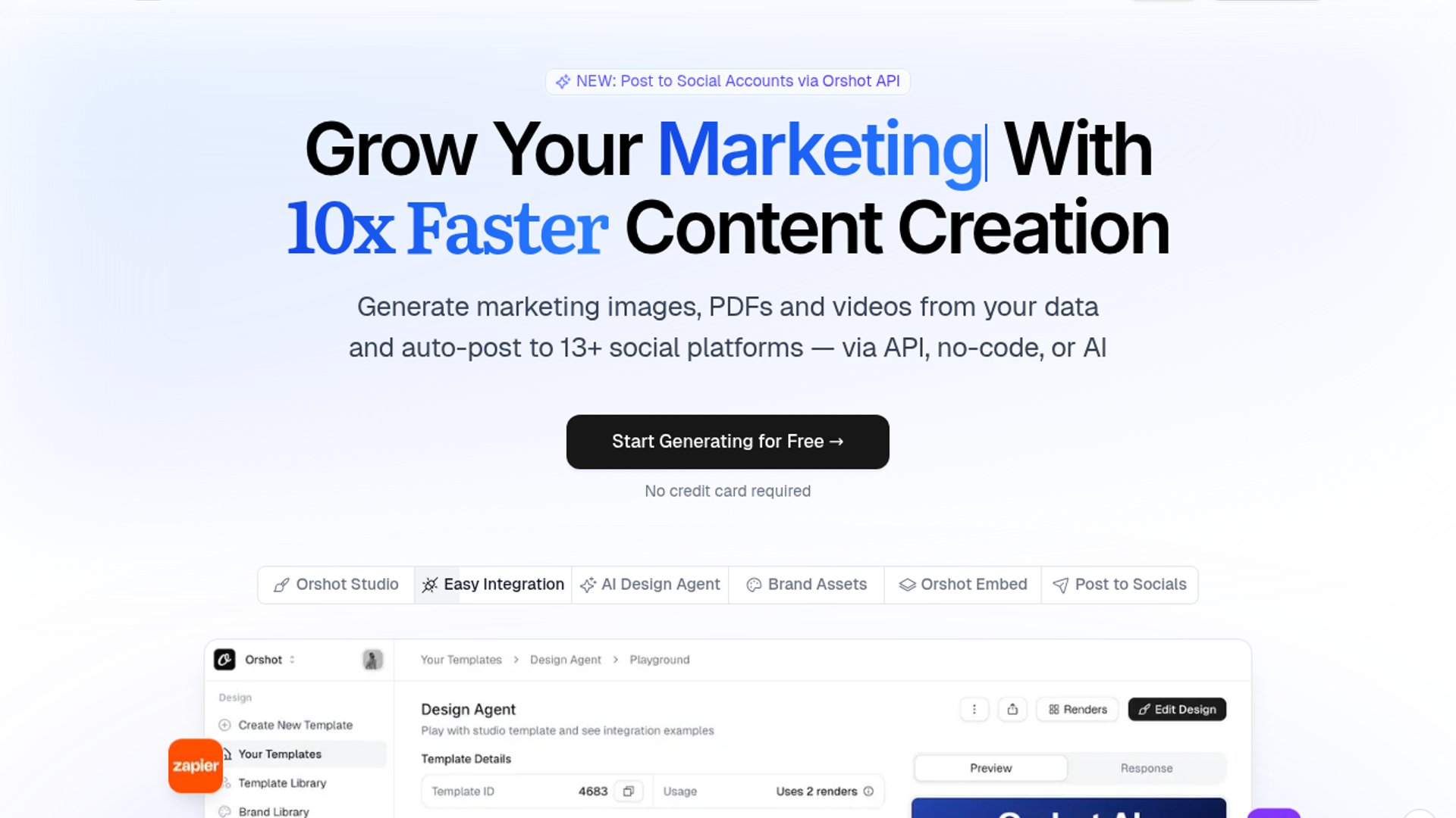 Orshot is relaunching its visual automation platform with direct posting to 13+ social networks on top of its existing API, no-code integrations, and Canva-like editor. The product lets teams turn templates into programmable assets for generating and publishing marketing images, PDFs, and videos from structured data.