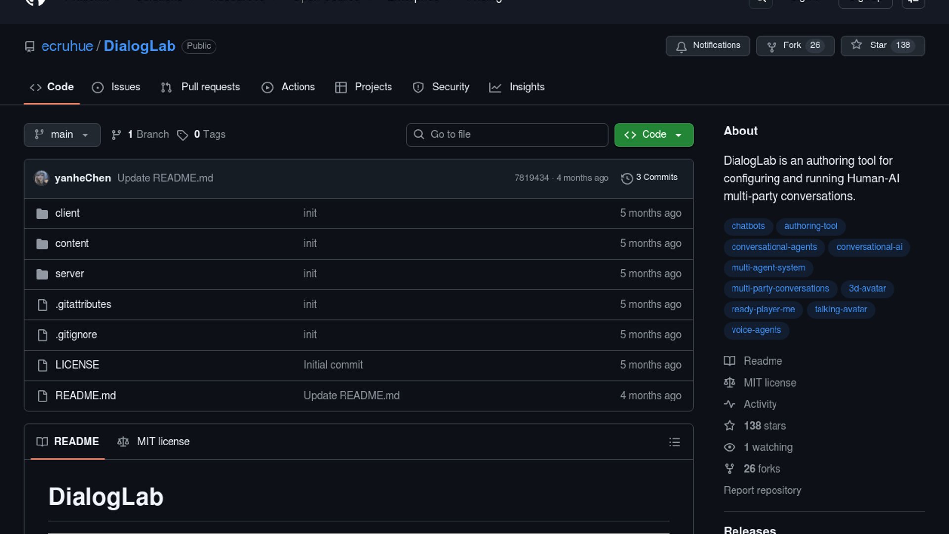 DialogLab is a Google Research open-source prototype for authoring, simulating, and testing dynamic human-AI group conversations instead of one-user chatbot flows. It introduces a structured author-test-verify workflow with scene configuration, turn-taking rules, human-in-the-loop simulation, and analytics for conversation quality.