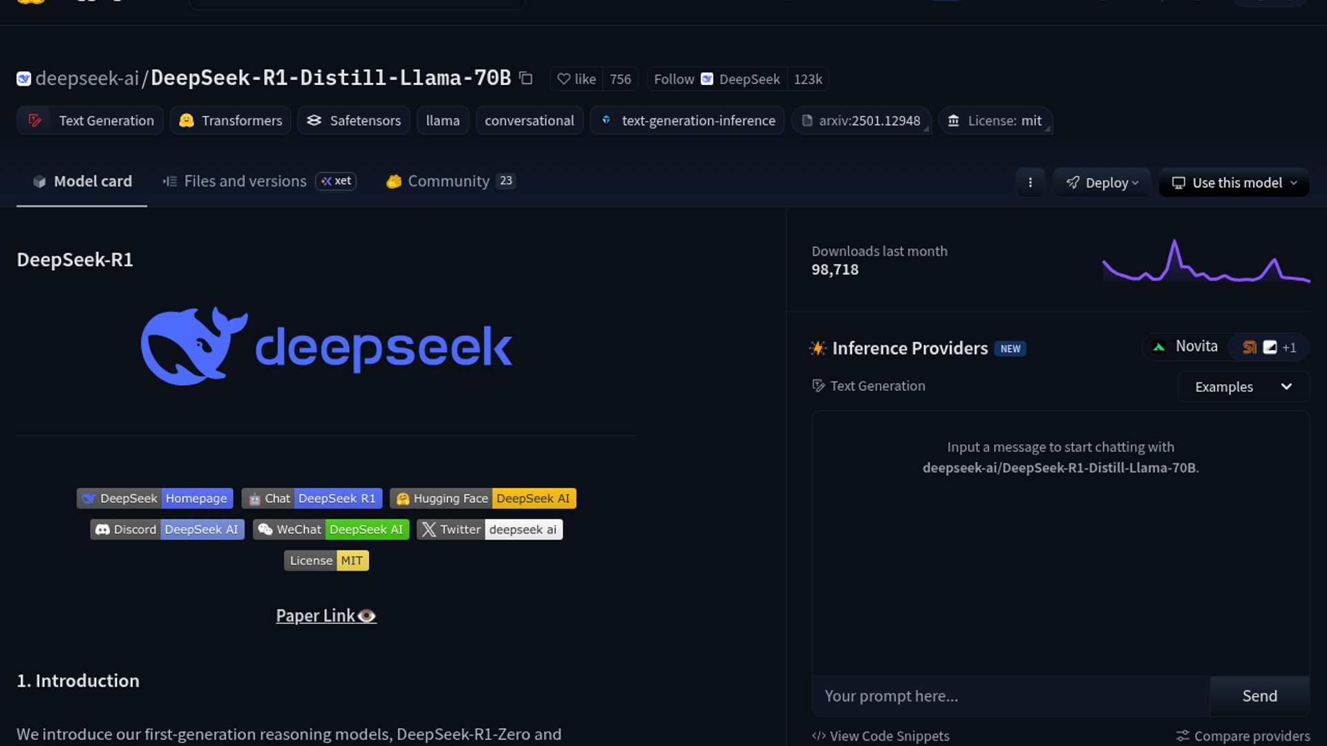 - –DeepSeek's official model card shows the 70B distill is Llama 3.3-70B-Instruct-based, which is where a lot of the local-run interest comes from