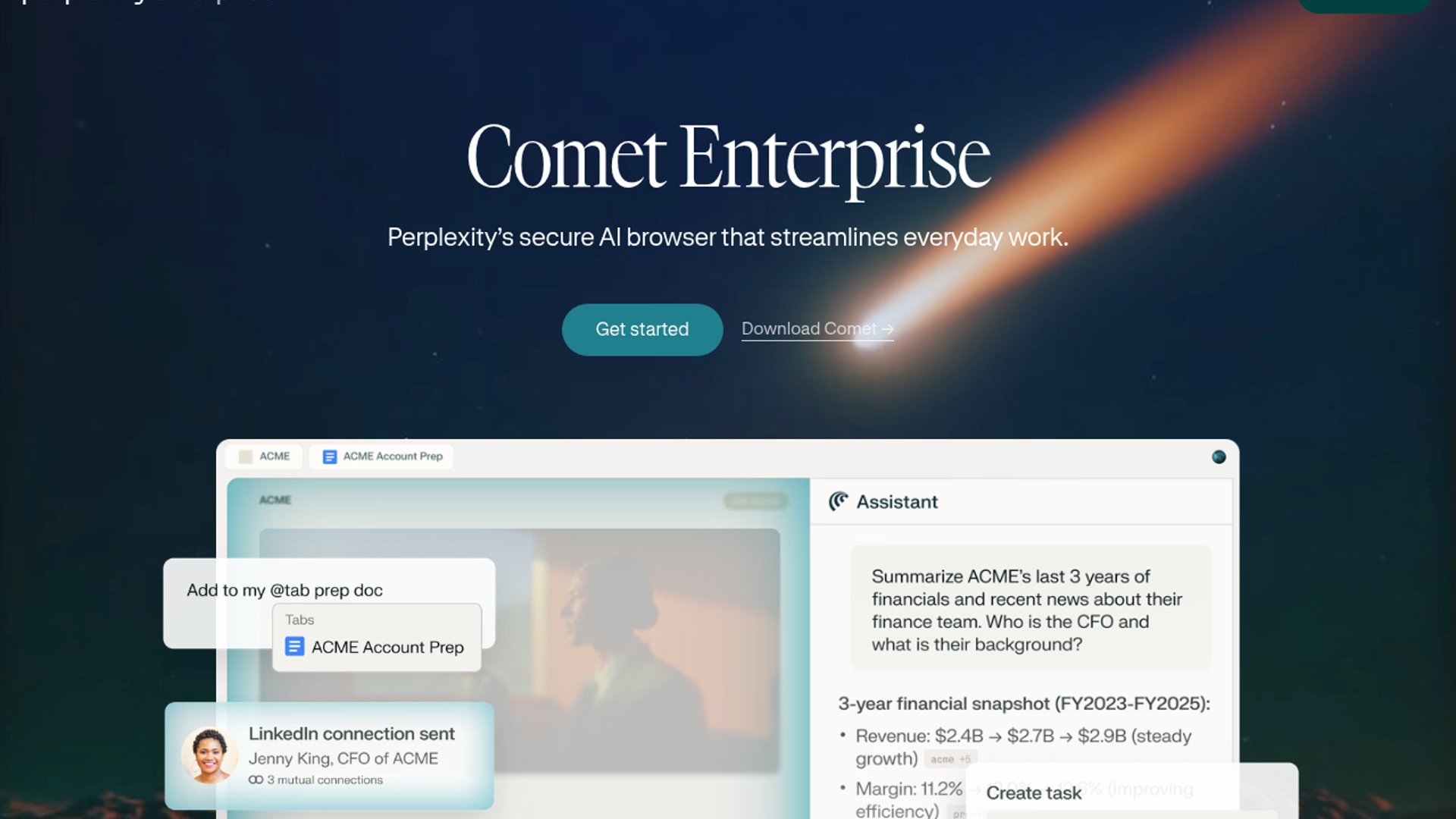 - –The product pitch is broad but coherent: Comet Assistant handles reading and research, while Comet Agent takes on multi-step actions across tabs and sites.