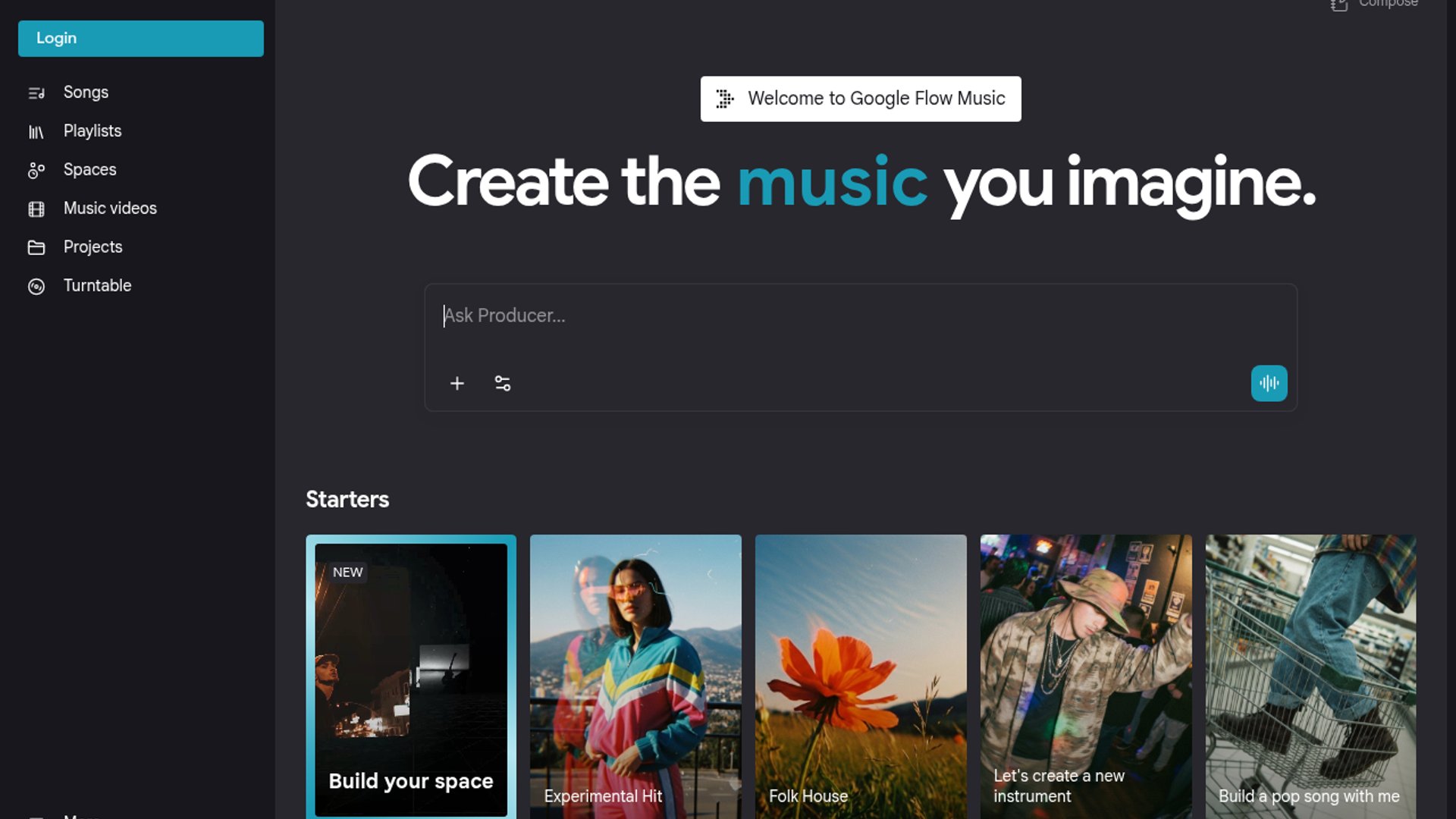 Google Flow Music is a browser-based AI music studio built around Google’s Lyria 3 models, with chat-style song creation, vocals, remixes, playlists, downloads, and AI music videos. The product appears to fold ProducerAI-style creative workflows into a broader Google Labs music creation surface.