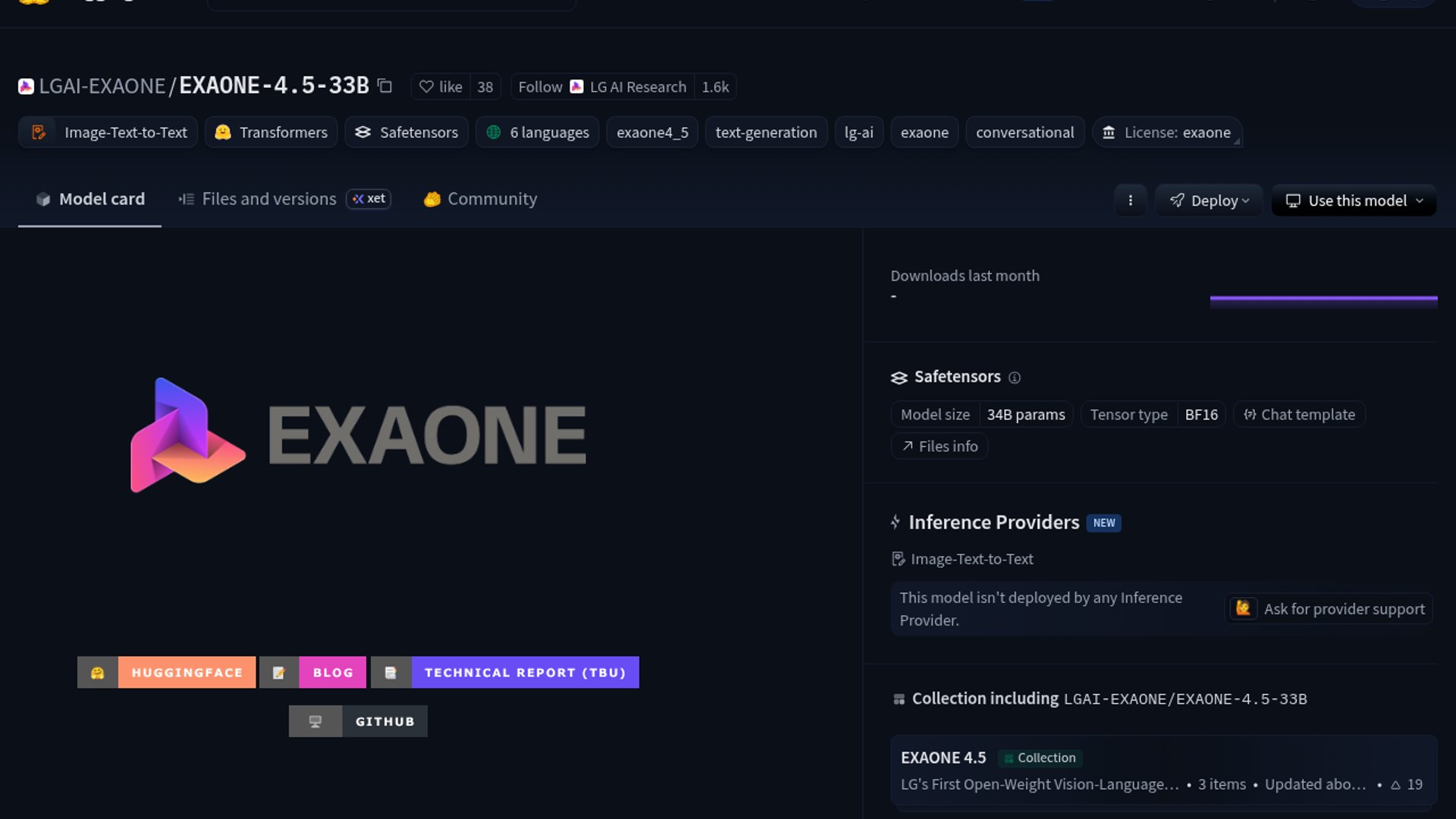 LG AI Research has published EXAONE-4.5-33B on Hugging Face, extending its EXAONE open-weight family with another large model release. It matters because LG keeps giving the community credible non-US alternatives at a size that is still practical to deploy.